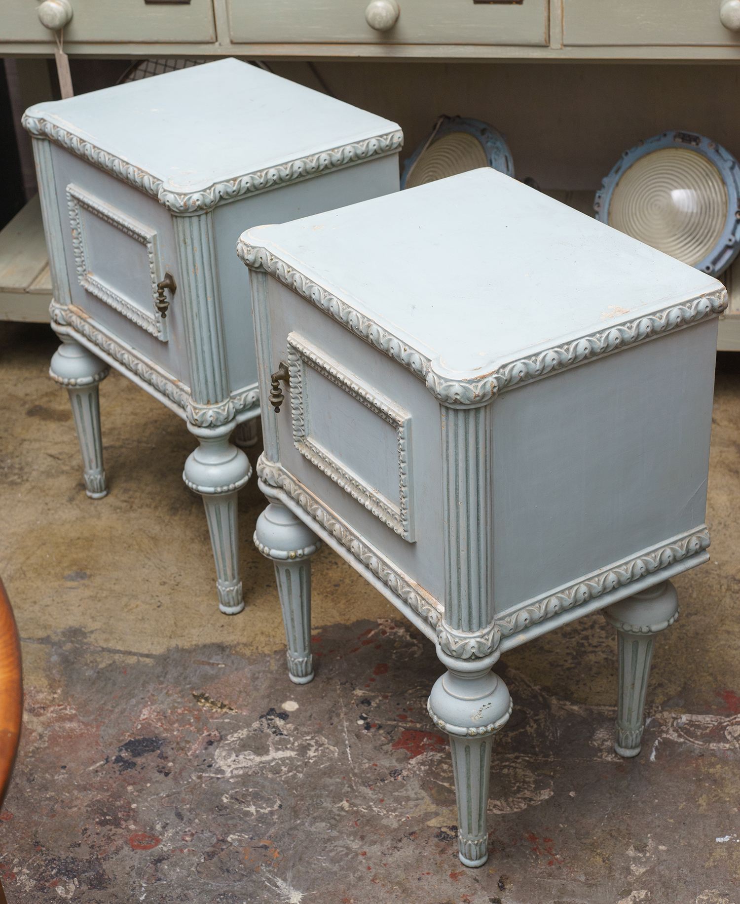 Both cabinets are in consistent with age. There is some areas of paint chipping on top and side however adds to the style. Otherwise in excellent condition, doors are sound and bases stable.