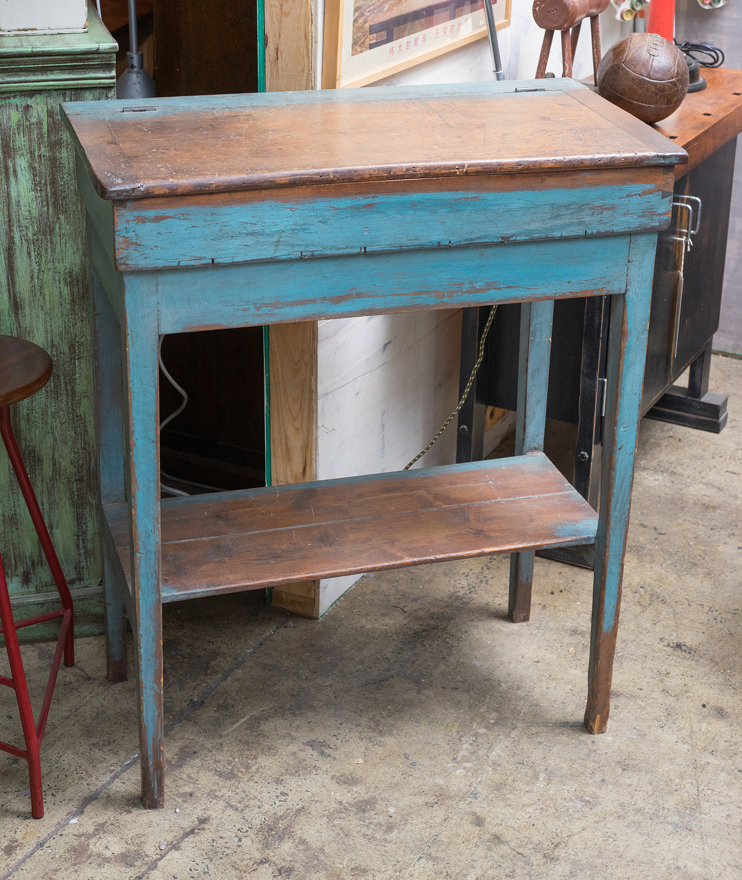 This lovely piece and is in very good condition. It is sturdy and the top compartment opens perfectly. The distressed paintwork is consitent with its age and adds to its charm.