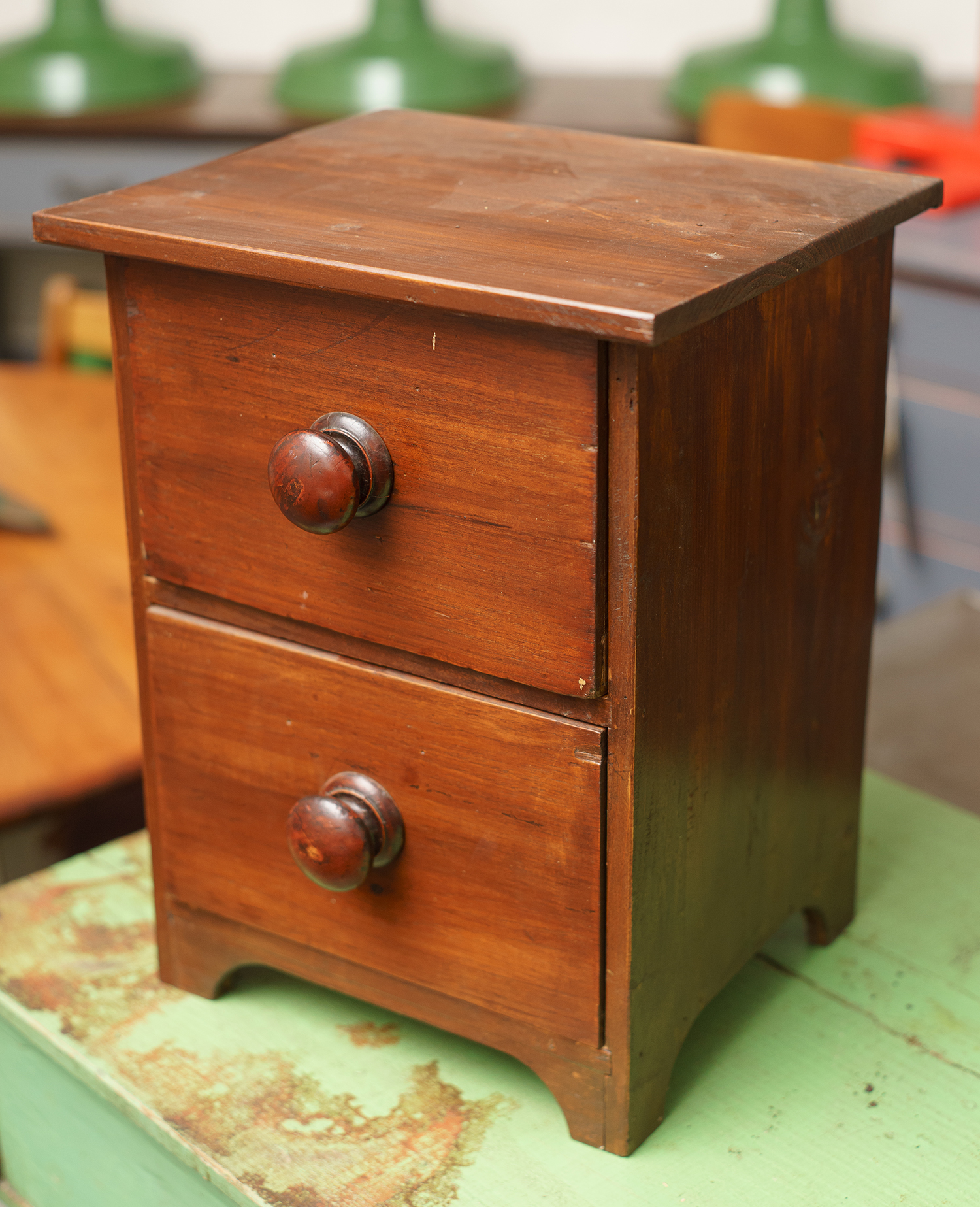 A 19th CENTURY MINIATURE TWO DRAWER CHEST
