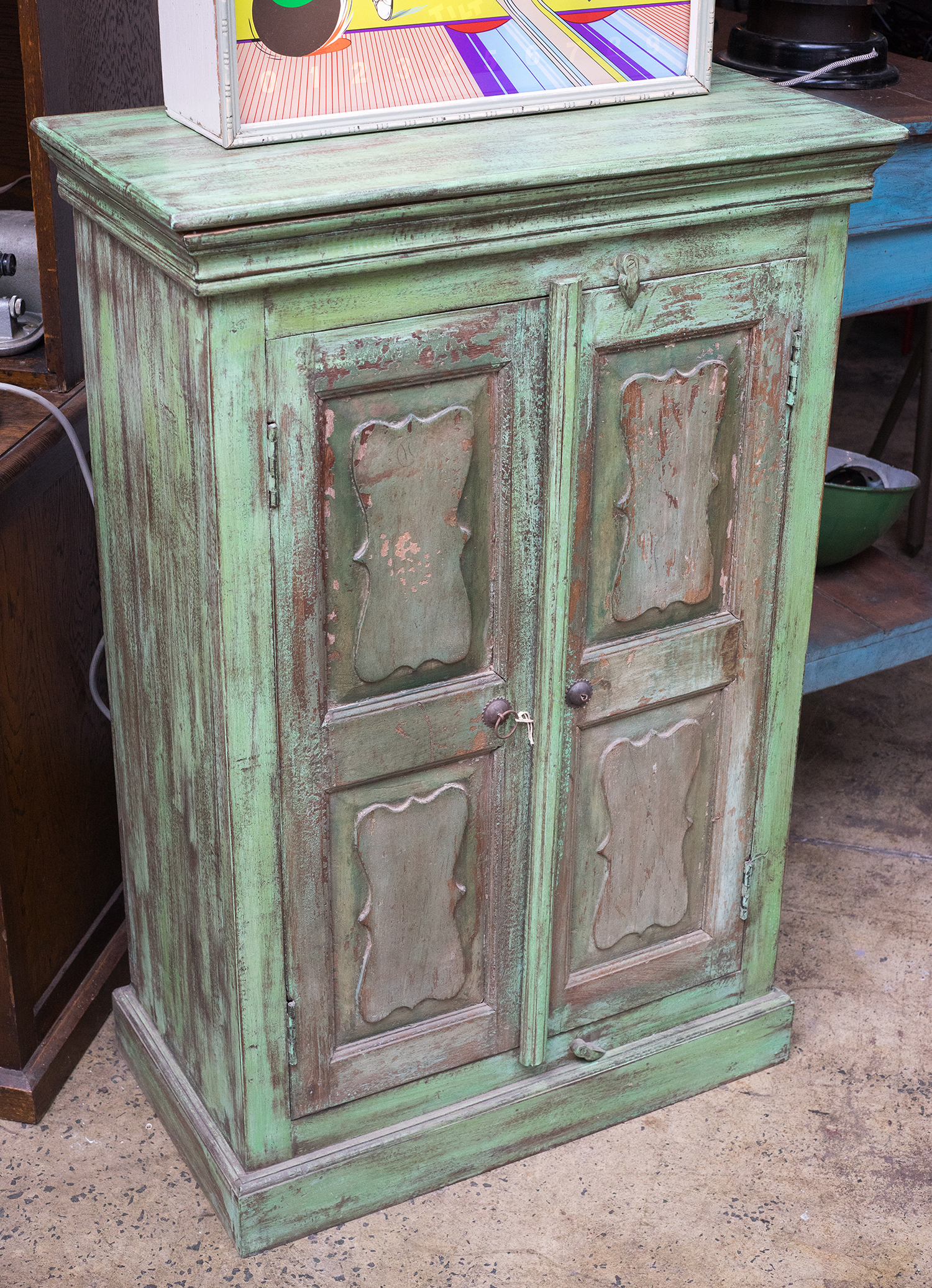 This cupboard is in excellent condition consistent with its age. There are scuffs and marks on the paintwork, however this adds to the charm of the peice. The unit is stable and with no bora