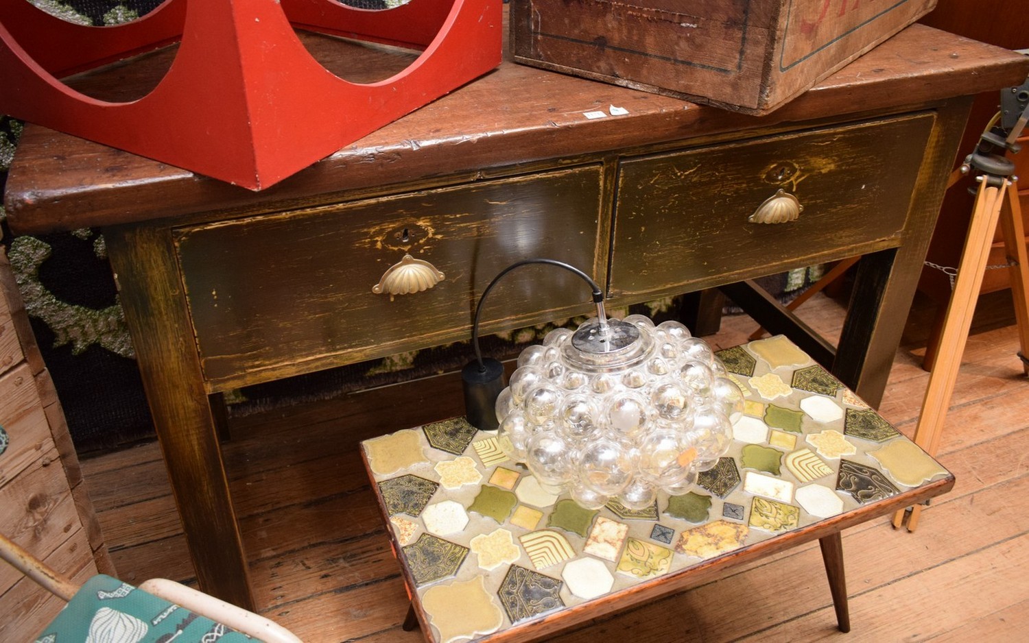 Thick ash top and ornate brass handles