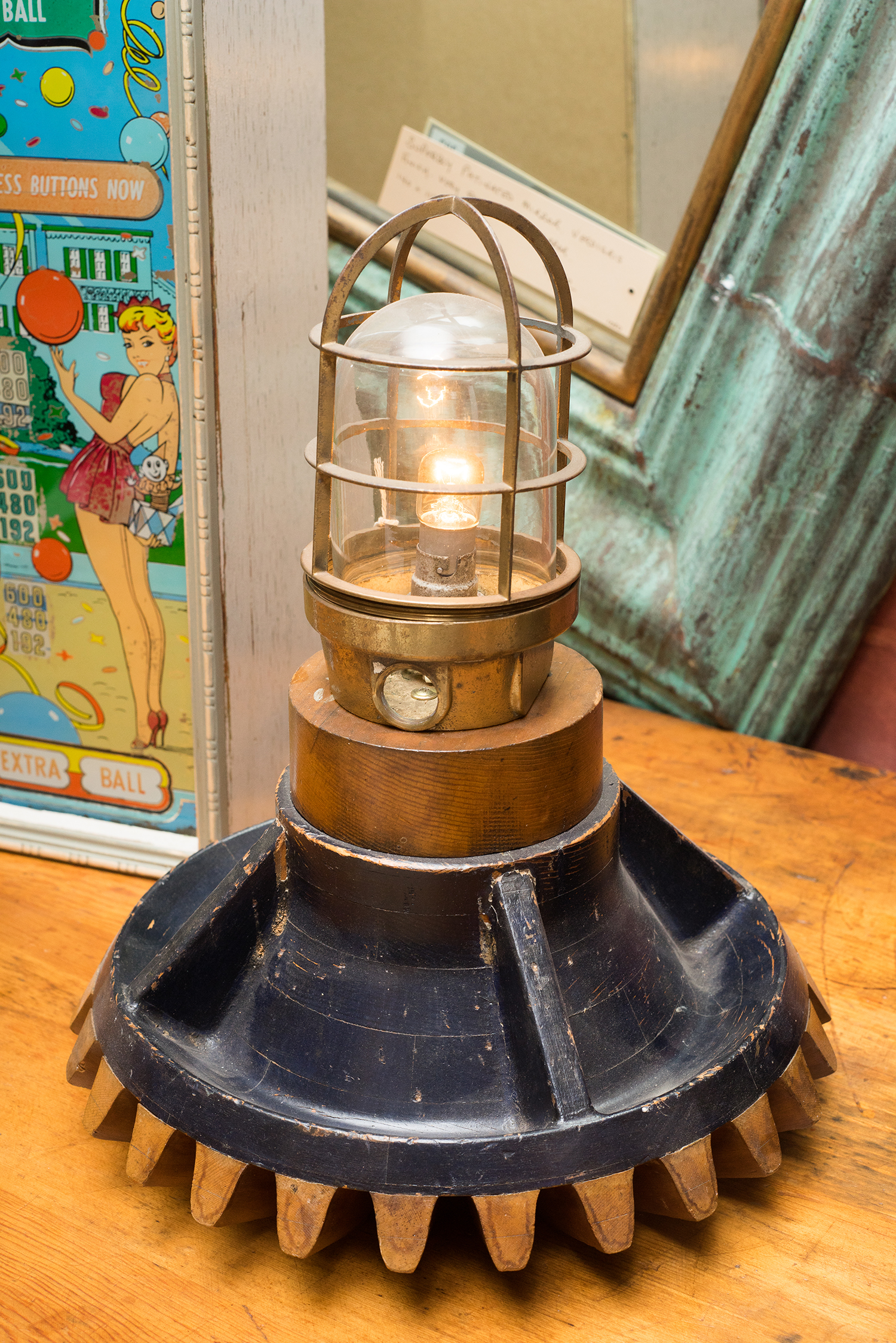 A BESPOKE TABLE LAMP MADE FROM FOUND ELEMENTS