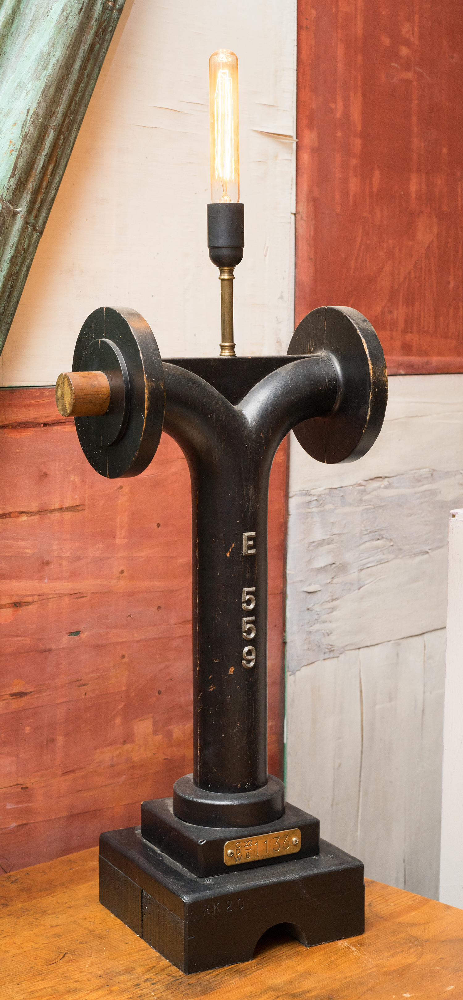 A BESPOKE TABLE LAMP MADE FROM FOUND ELEMENTS