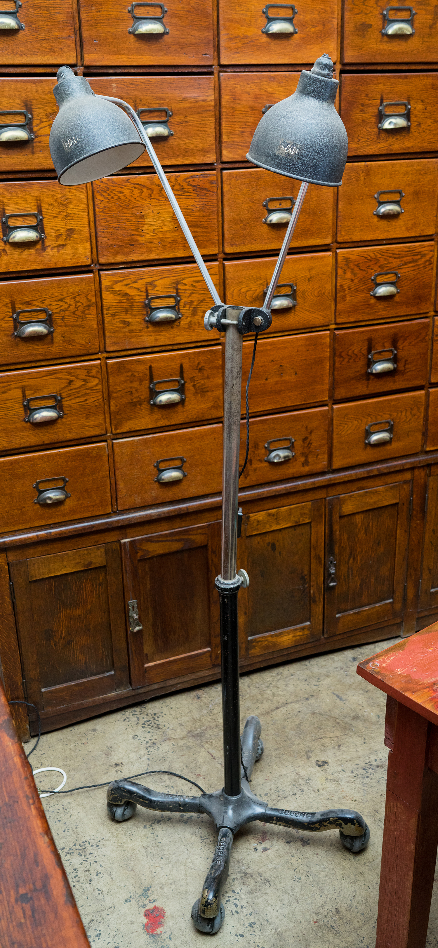 A 'REXEL' DOUBLE HEADED LIGHT ON QUADFORM BASE