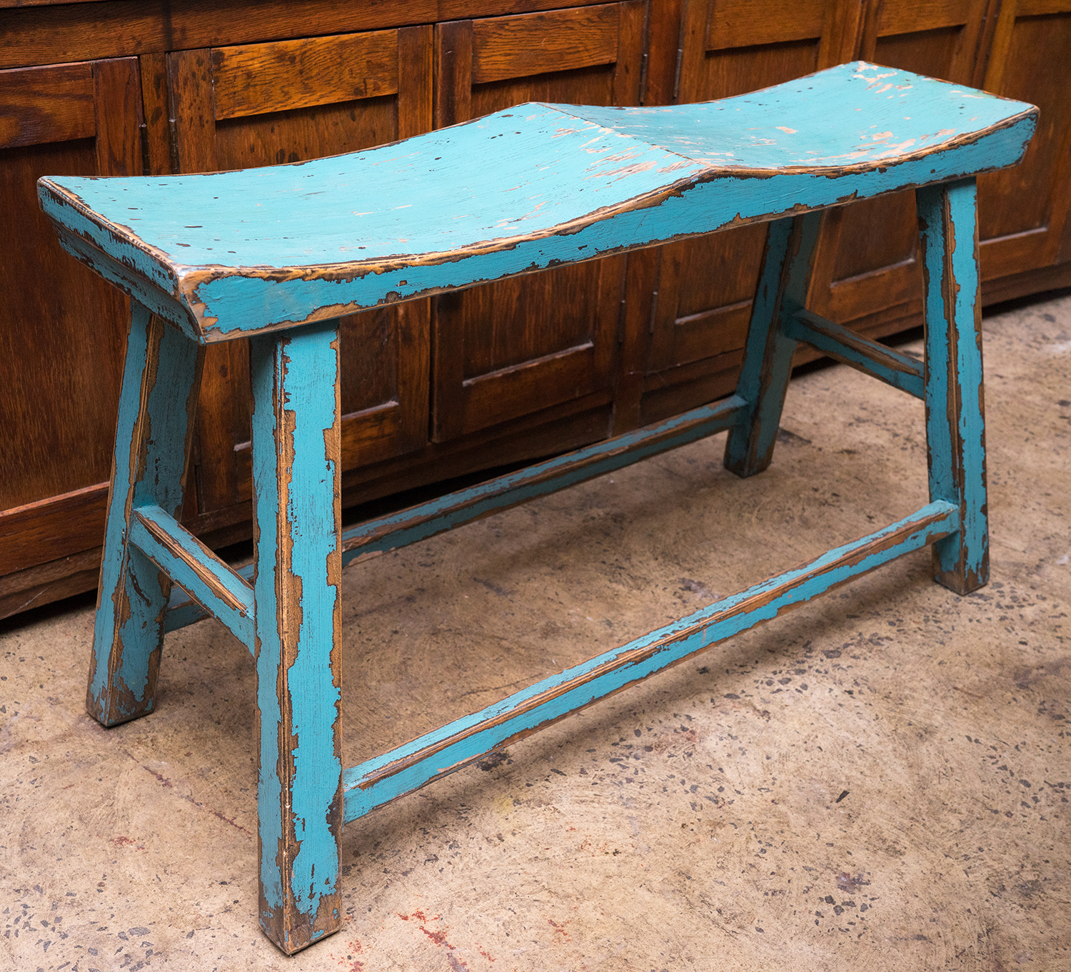 A RUSTIC ORIENTAL TIMBER TWO SEAT BENCH