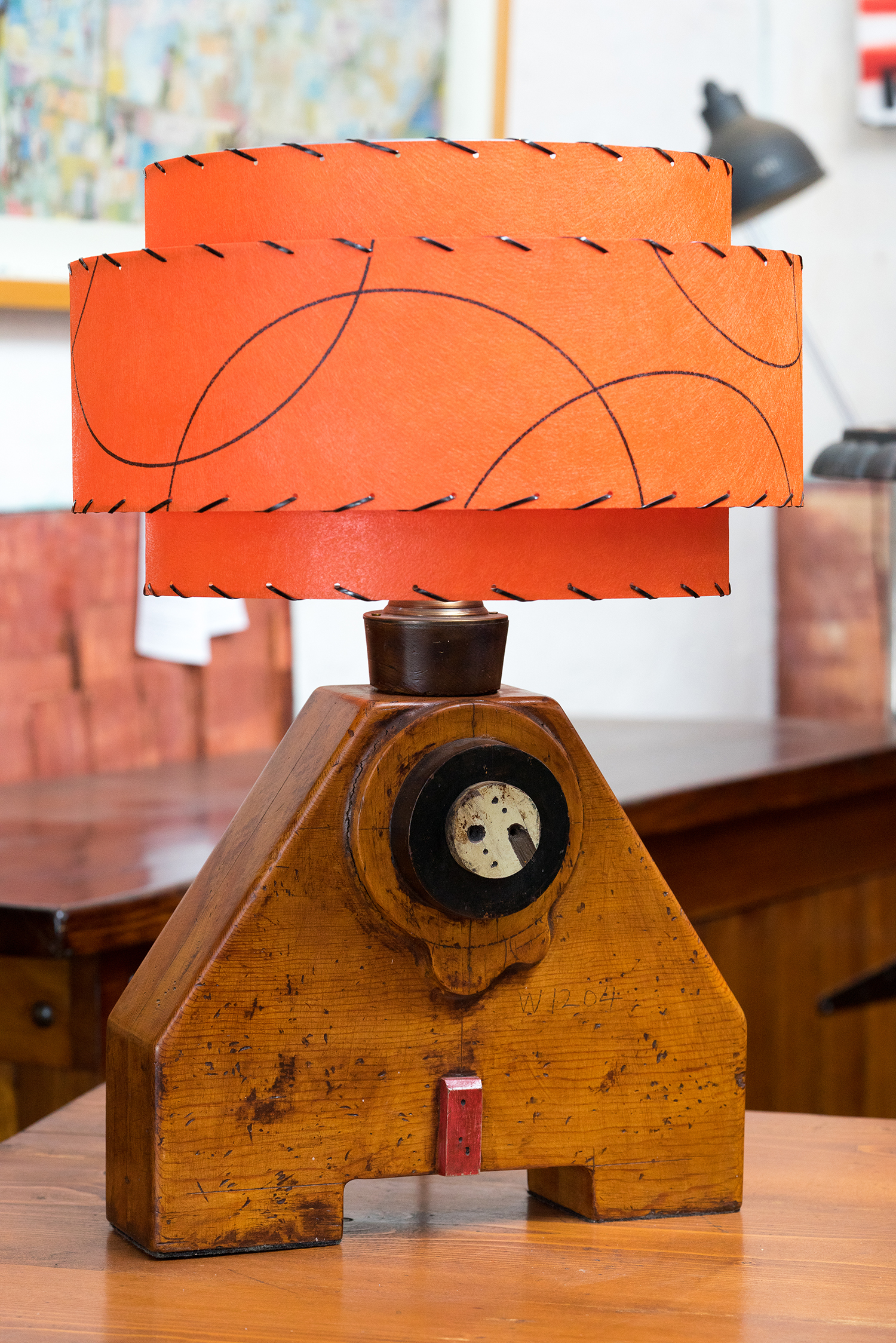 A BESPOKE INDUSTRIAL LAMP MADE OF FOUND ELEMENTS