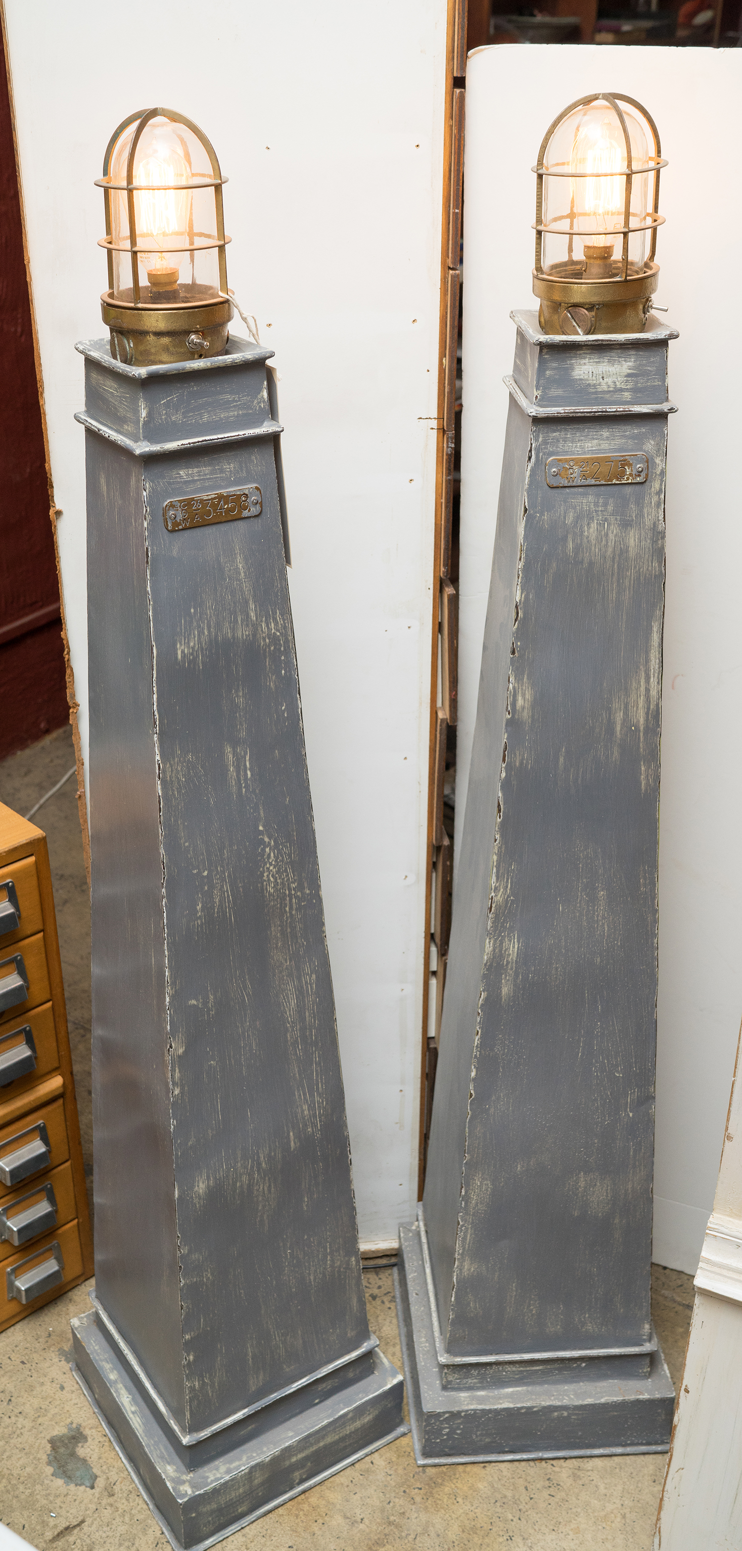 A PAIR OF BESPOKE INDUSTRIAL LAMPS WITH CAGED LIGHTS