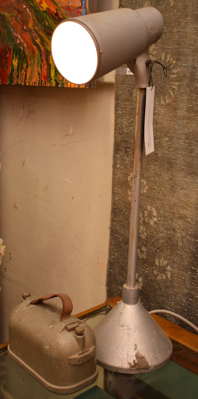 A 1950s ENGLISH SURVEYORS TOOL AND INDUSTRIAL TABLE LAMP