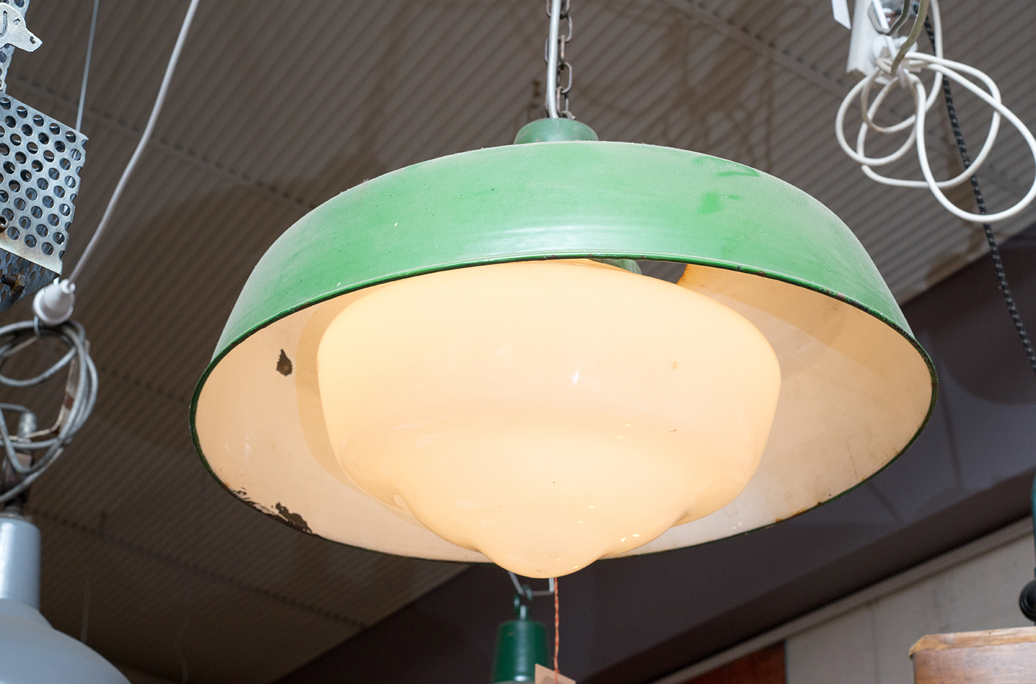 AN IMPRESSIVE 1940s INDUSTRIAL ENAMELLED CEILING LIGHT