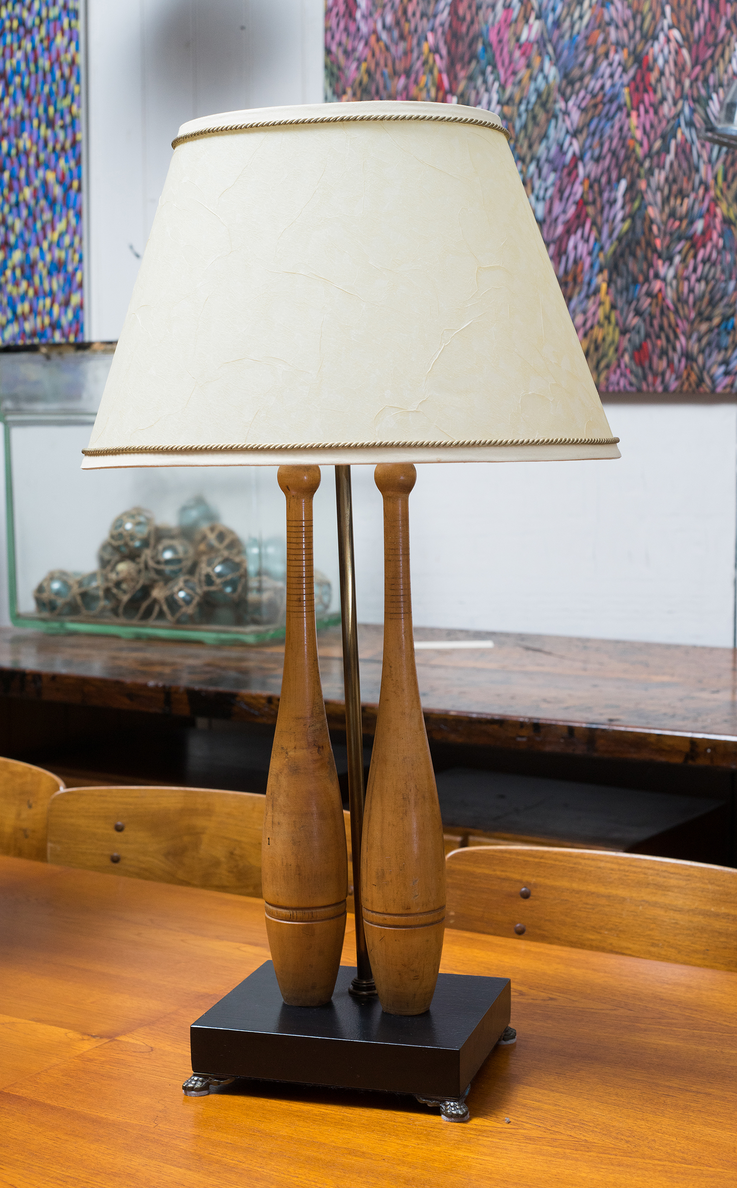 A BESPOKE LAMP FEATURING VINTAGE INDIAN CLUBS