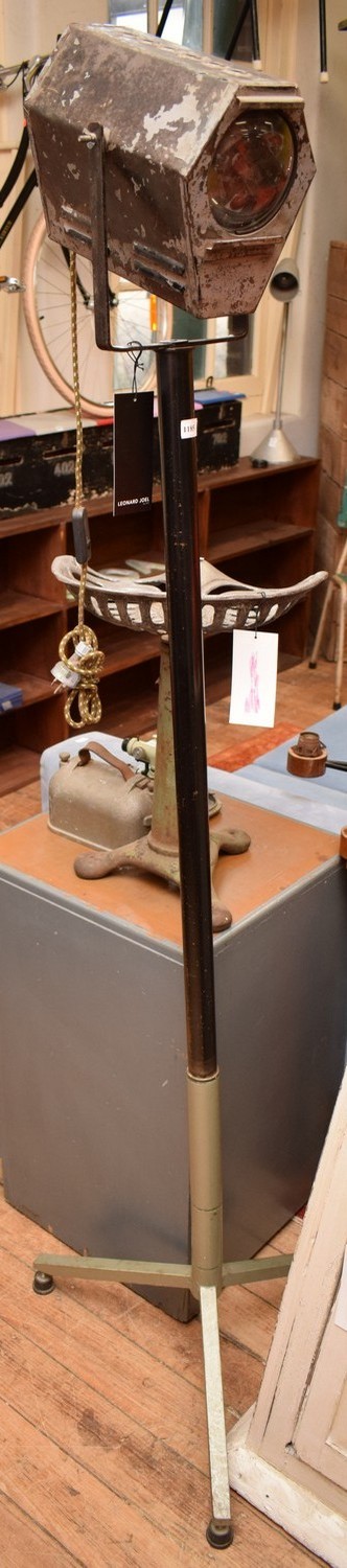 A 1940s STAGE LIGHT ON TRIPOD BASE