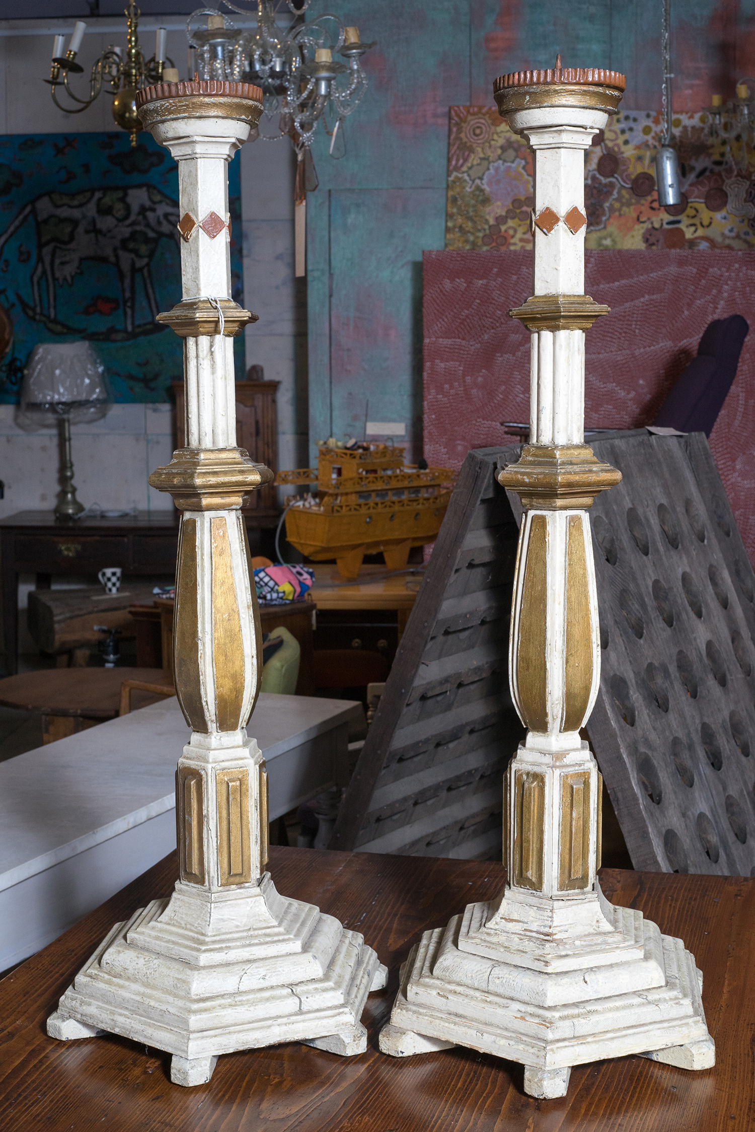 A PAIR OF ITALIAN ECCLESIASTICAL CANDLE STICKS