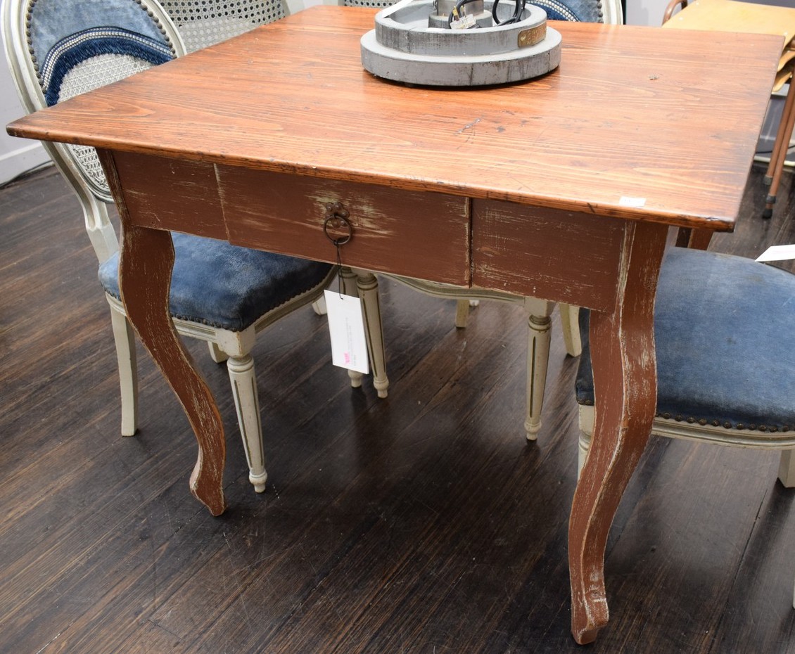 A RUSTIC PROVINCIAL STYLE SINGLE DRAWER SQUARE TOP TABLE