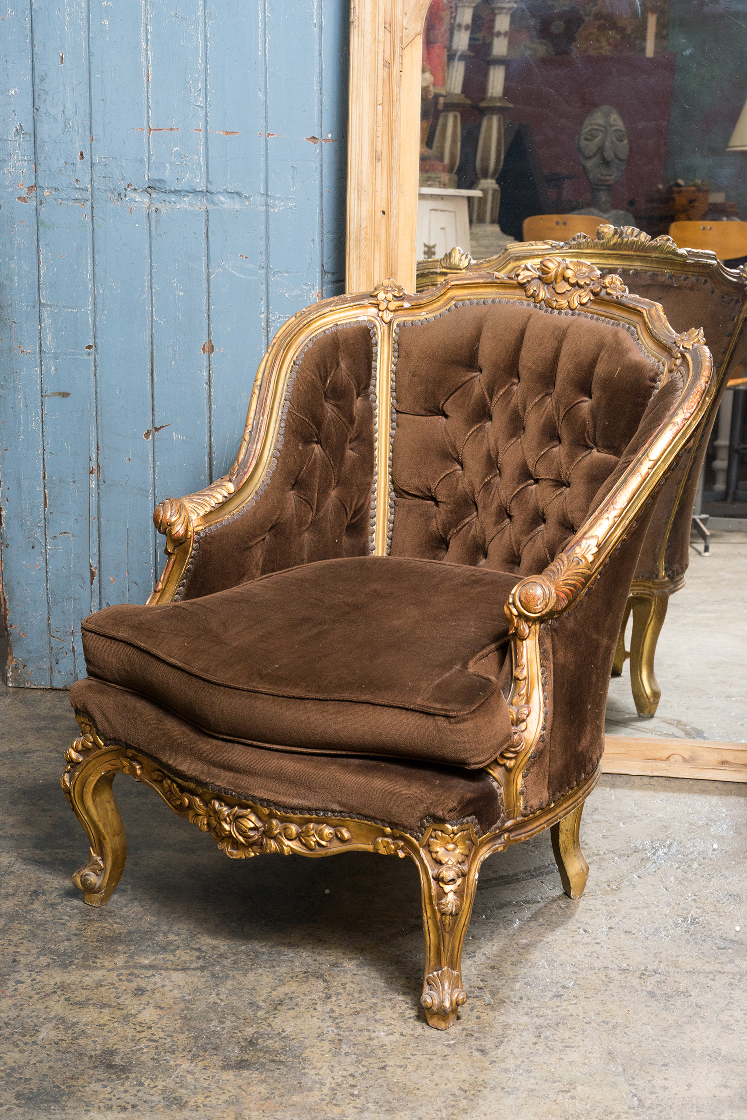 A PAIR OF LOUIS XV INSPIRED FRENCH BERGERES