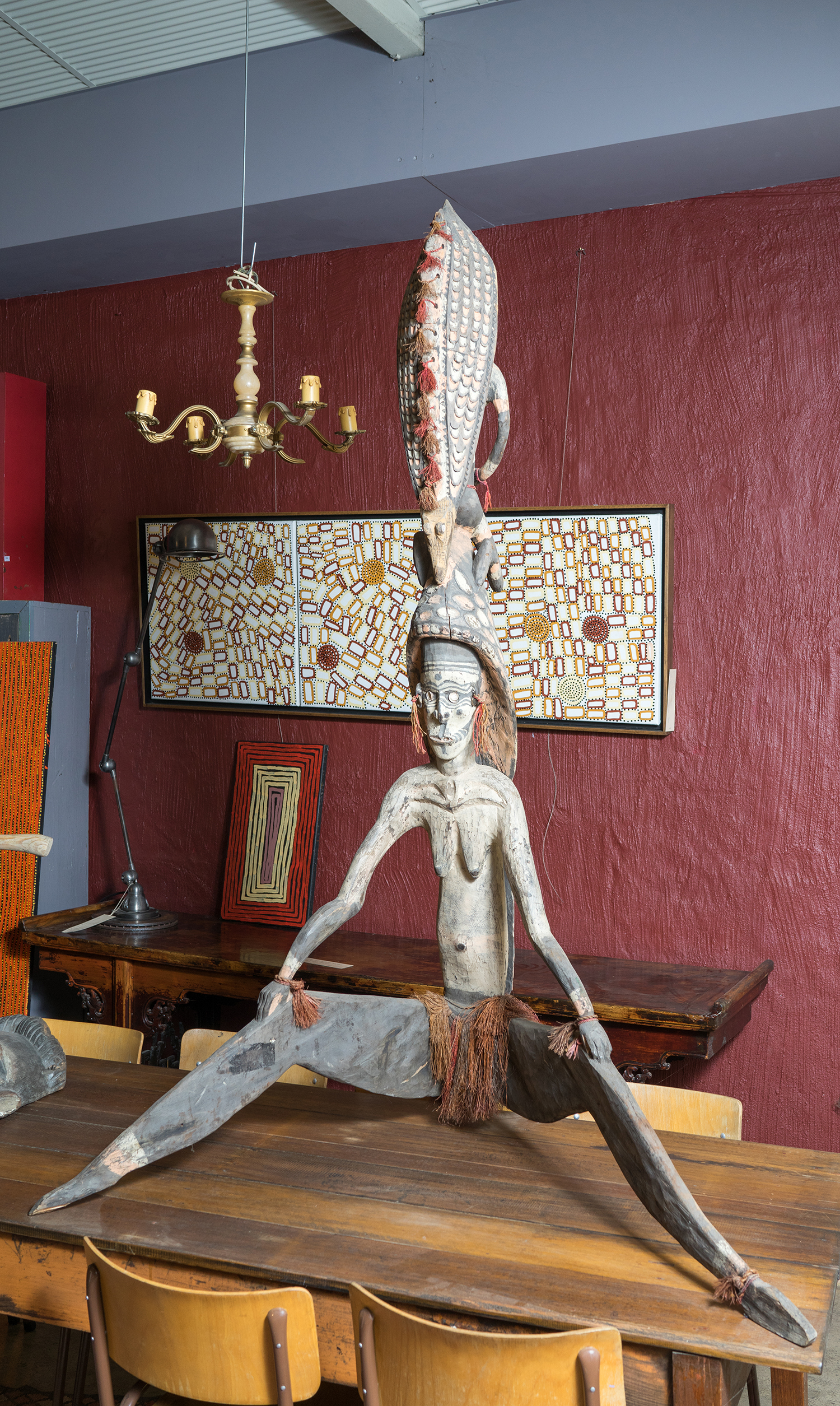 A LARGE NEW GUINEA SEPIK RIVER POLYCHROME ANCESTOR FIGURE