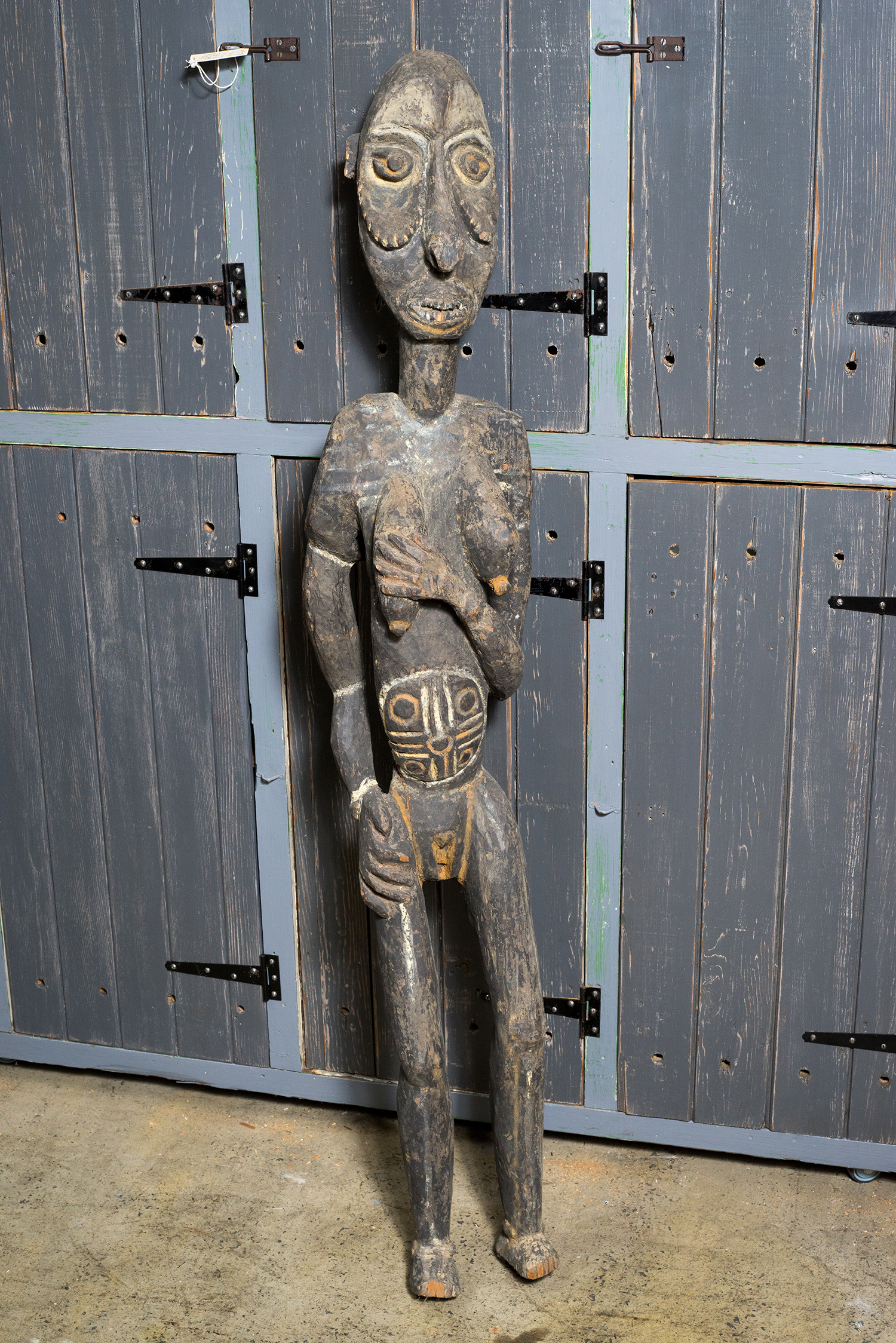 A LARGE NEW GUINEA SEPIK RIVER FEMALE ANCESTOR FIGURE