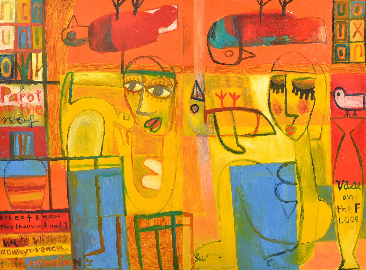 signed, dated and titled lower left: Robert Ryan/ two thousand and 1/ well wishes allways [sic] reach their destination
