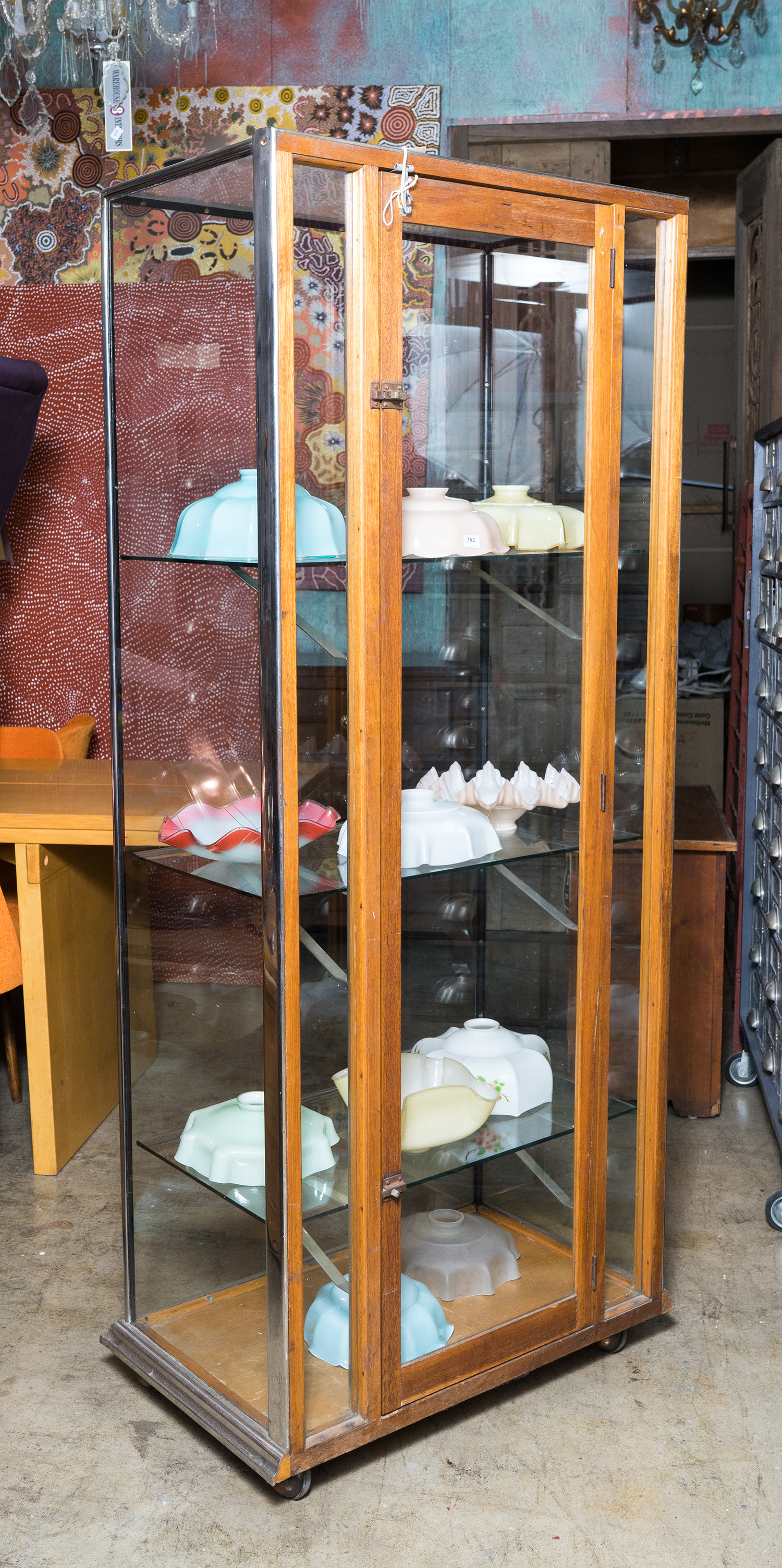 A 1940s NICKEL BOUND DISPLAY CASE 'BOSTON GLASS CO.'
