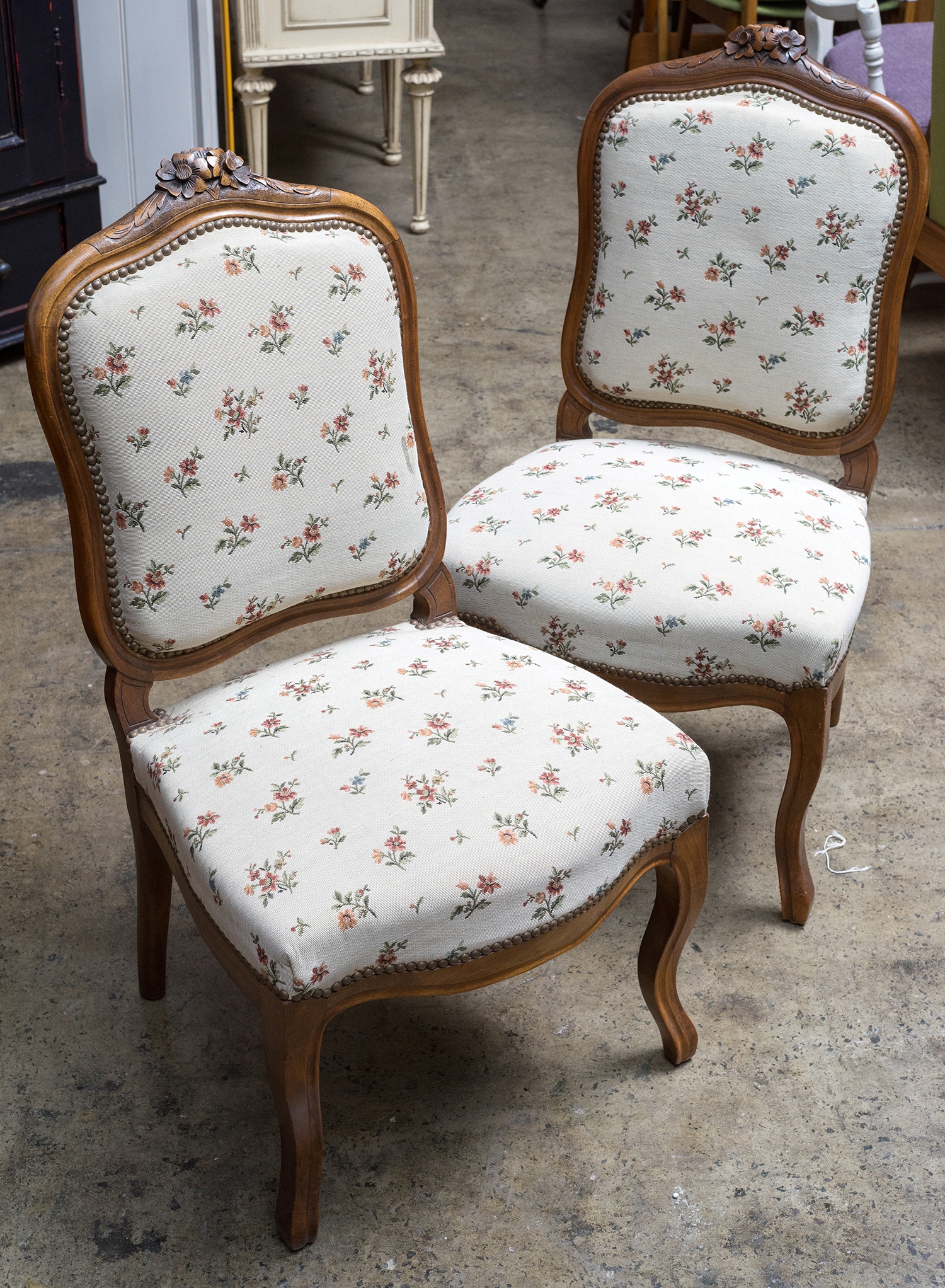 A PAIR OF LOUIS XV INSPIRED FRENCH DINING CHAIRS