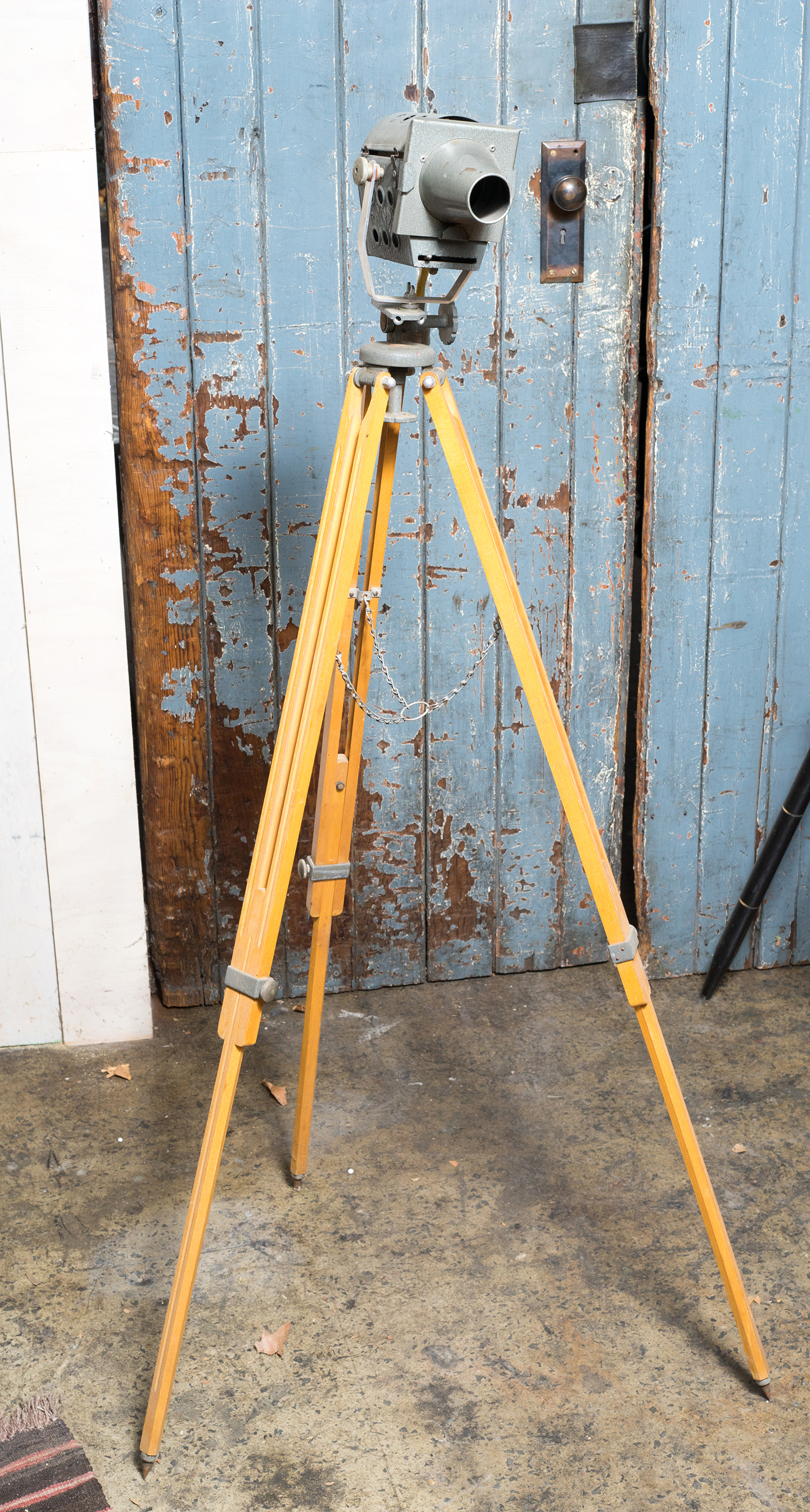 A VINTAGE FRENCH PHOTOGRAPHIC LIGHT ON TRIPOD BASE