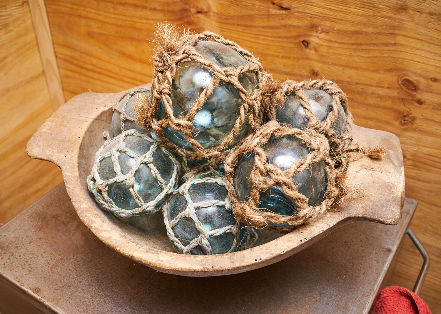 A RUSTIC BOWL CONTAINING JAPANESE FISHING WEIGHTS