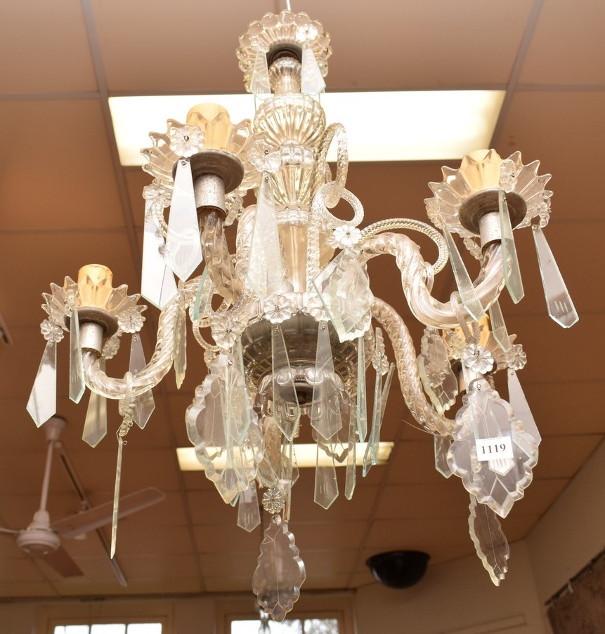 A MID CENTURY FRENCH FIVE BRANCH CHANDELIER