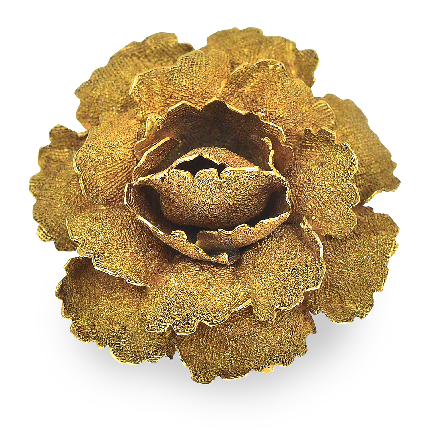 Modelled as a flower in 15ct gold, with inscription to the reverse, circa 1929.