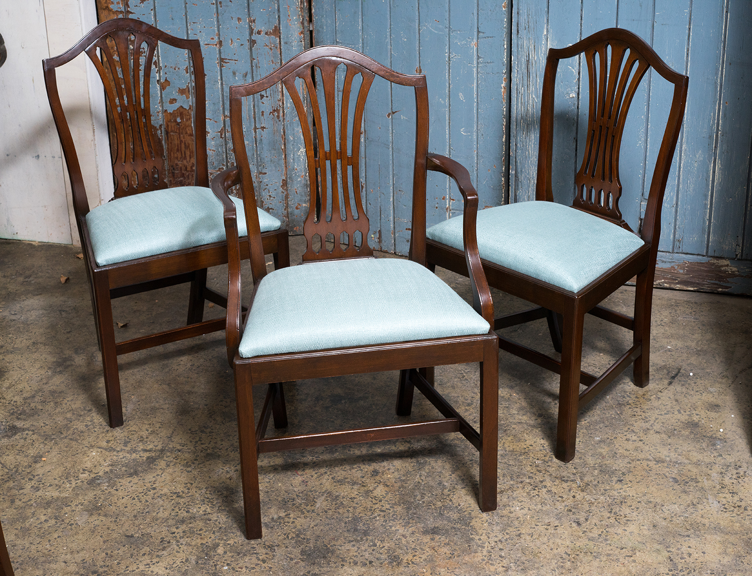 A SET OF EIGHT 19th CENTURY HEPPLEWHITE DINING CHAIRS INCLUDING TWO CARVERS