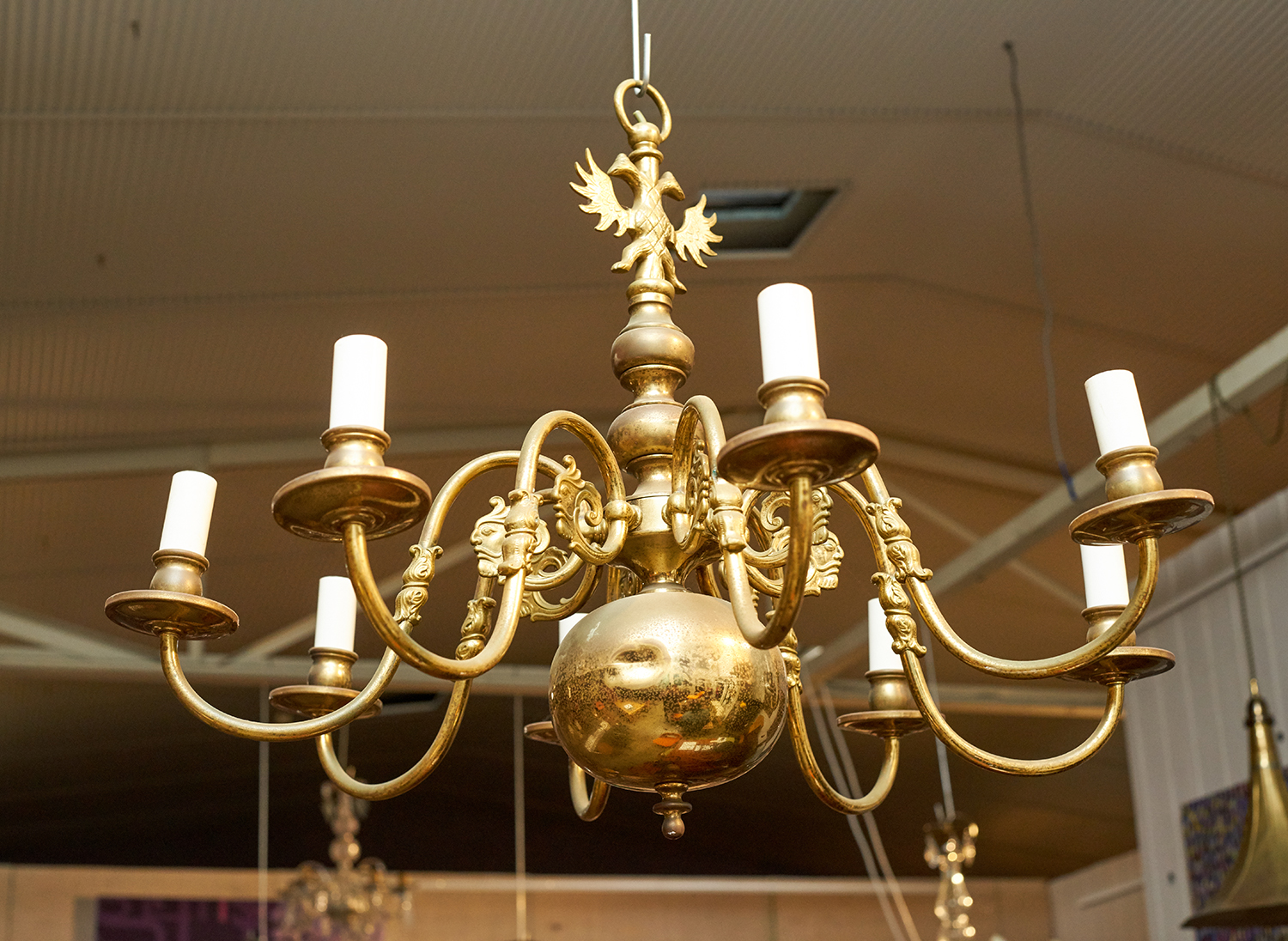 A DECORATIVE FLEMISH STYLE EIGHT BRANCH CHANDELIER