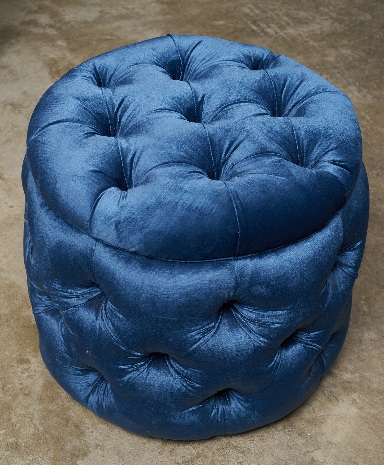 A CIRCULAR DIAMOND BUTTONED OTTOMAN