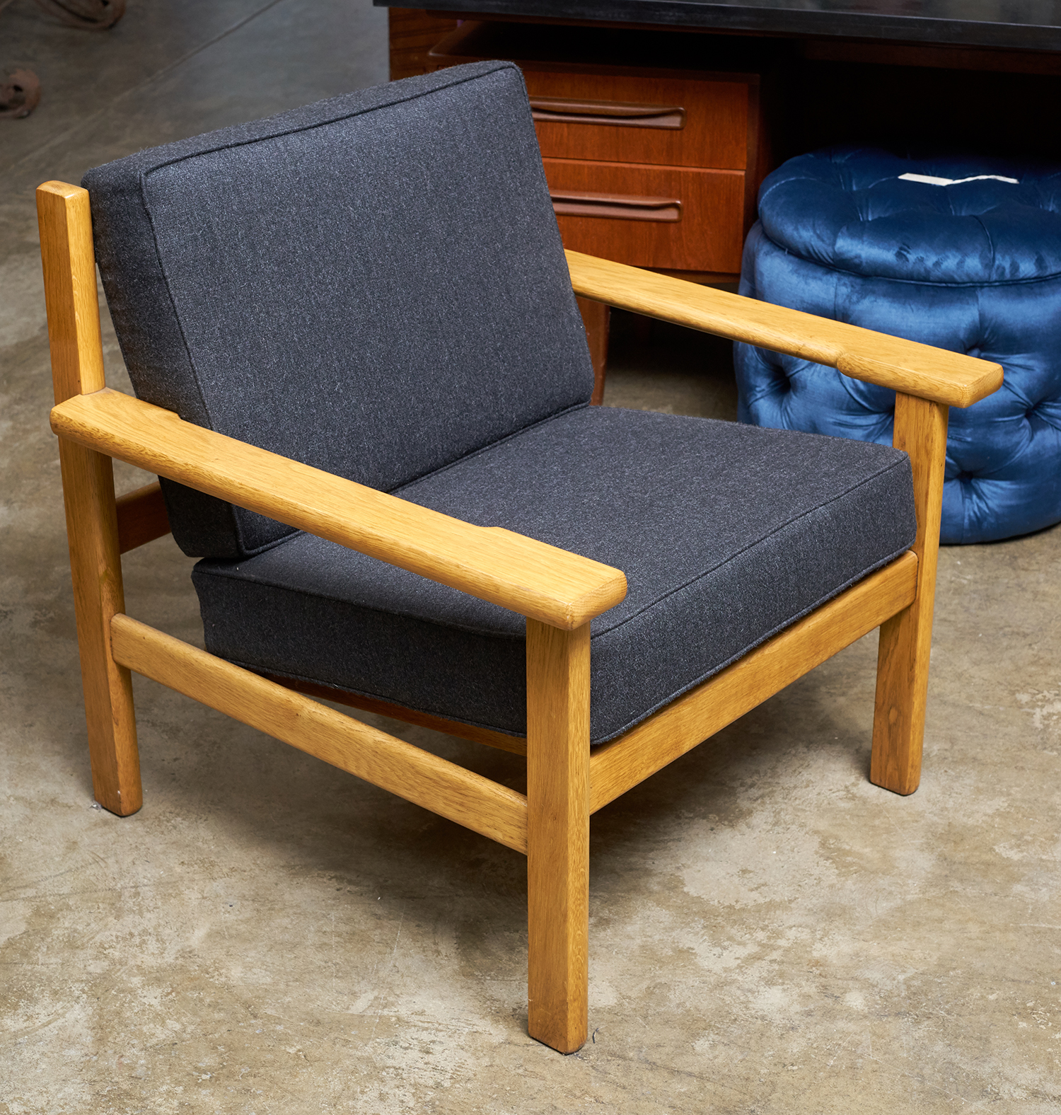 A MID CENTURY INSPIRED ARMCHAIR IN THE STYLE OF HANS WAGNER