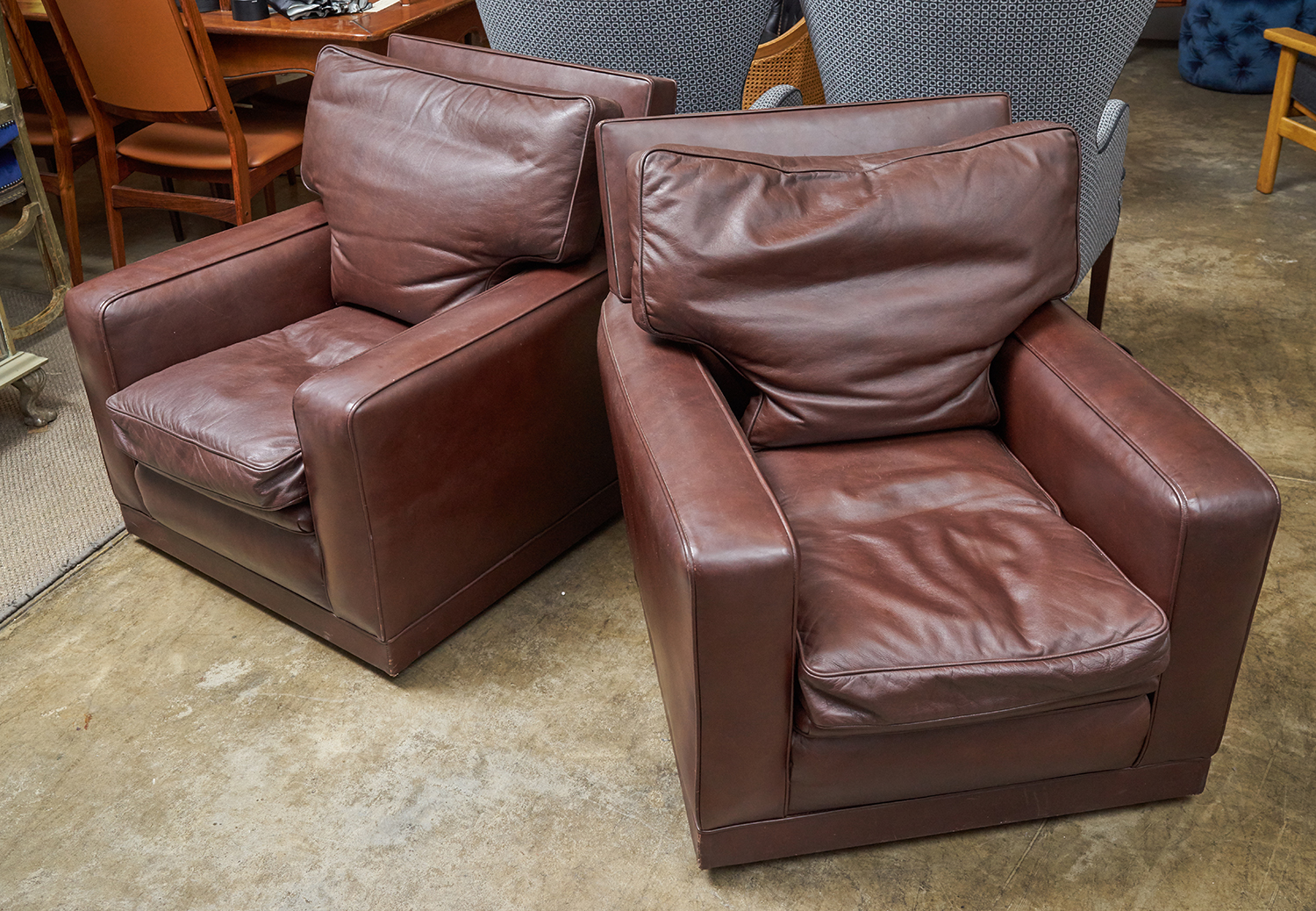 A PAIR OF EARLY 20th CENTURY LEATHER CLUB CHAIRS