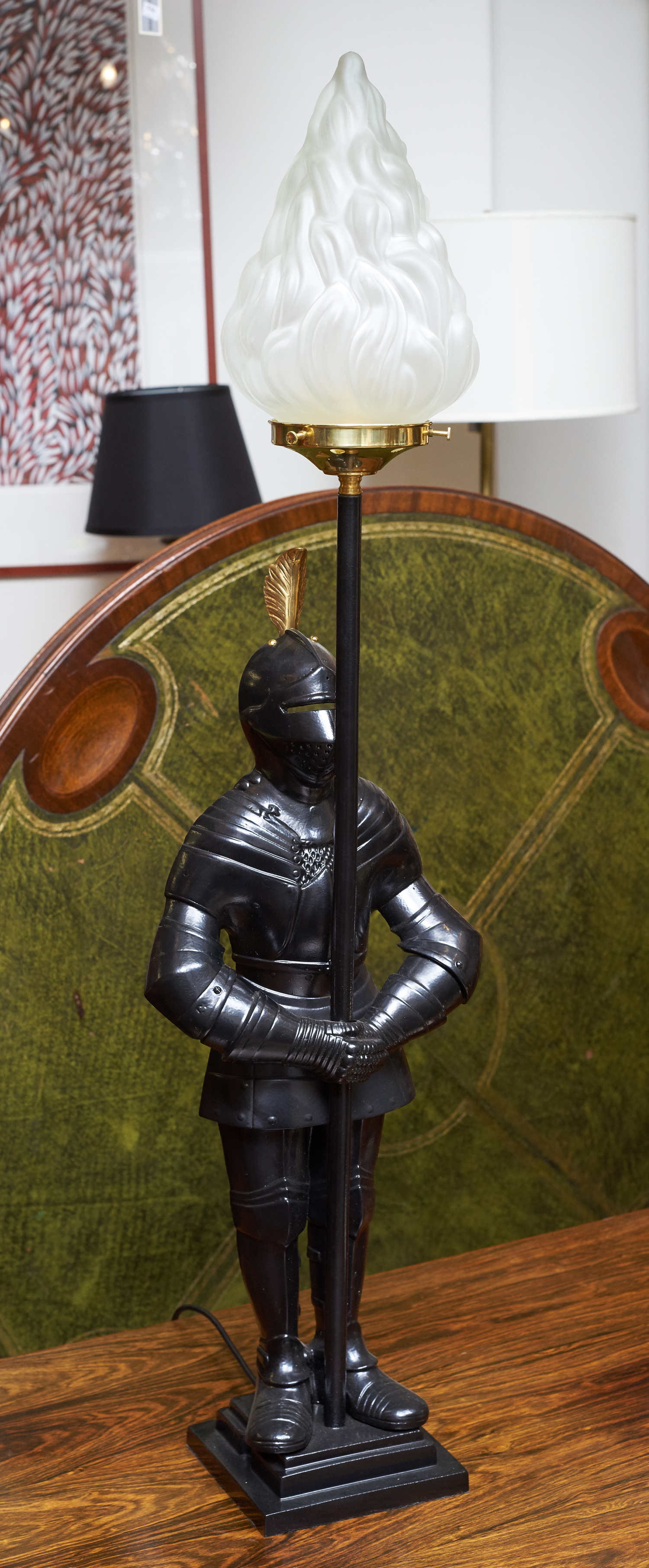A CAST METAL KNIGHT LAMP