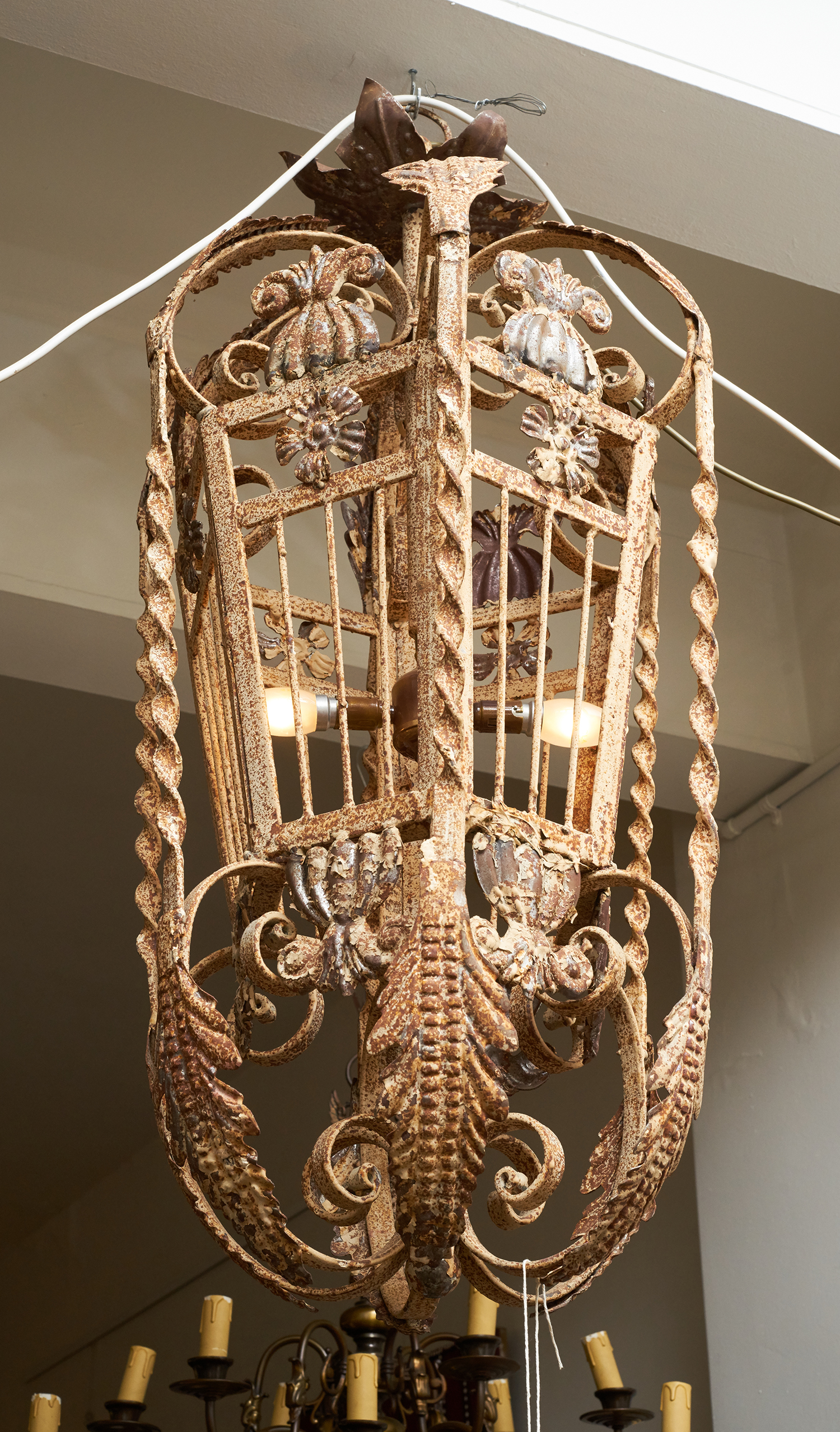 AN EARLY 20th CENTURY FRENCH WROUGHT IRON LANTERN