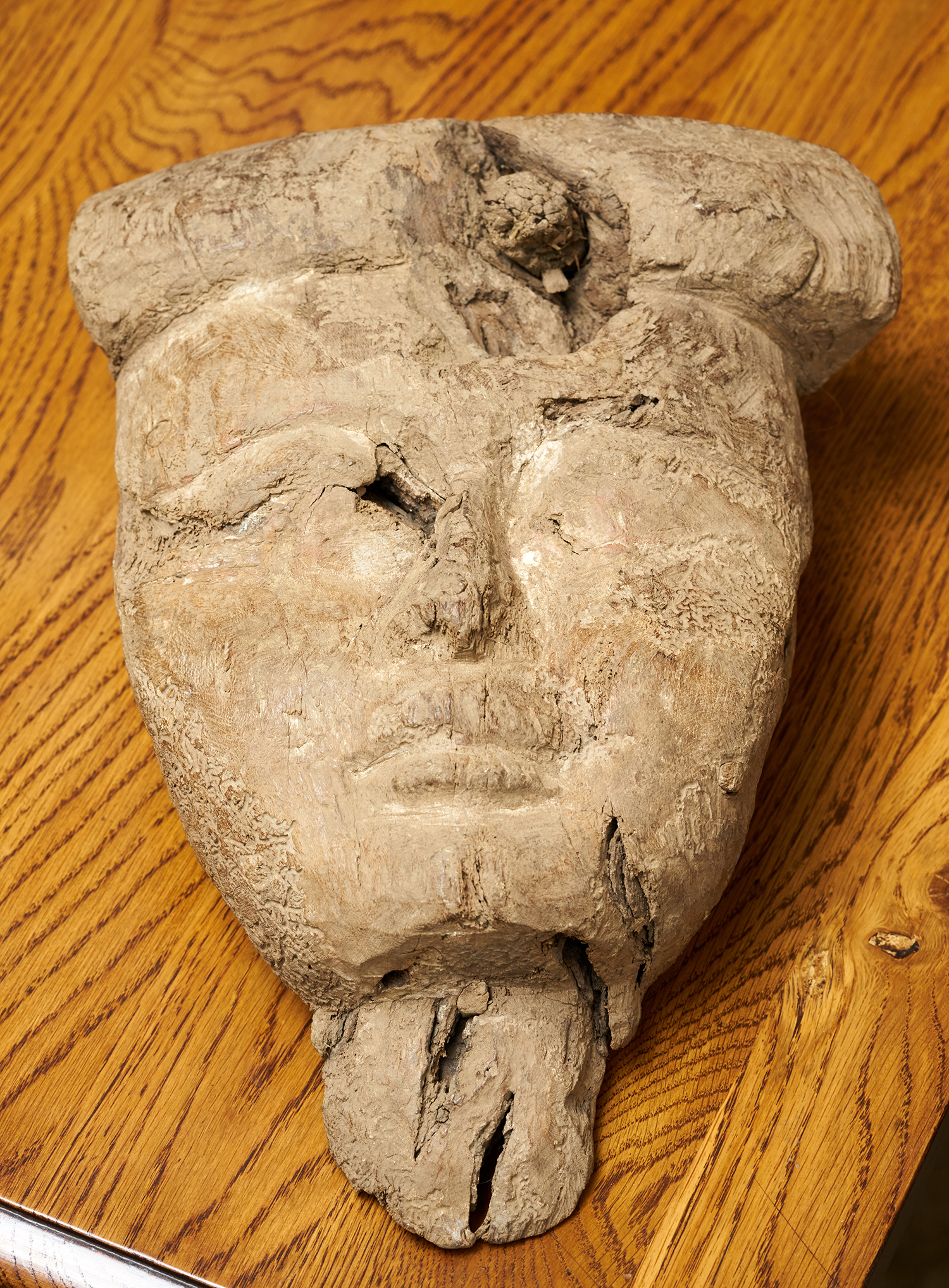 A 14th CENTURY EGYPTIAN MIDDLE KINGDOM SARCOPHAGUS MASK