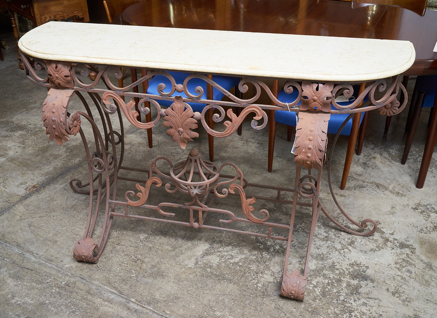 A EARLY 20th CENTURY FRENCH WROUGHT IRON CONSOLE TABLE