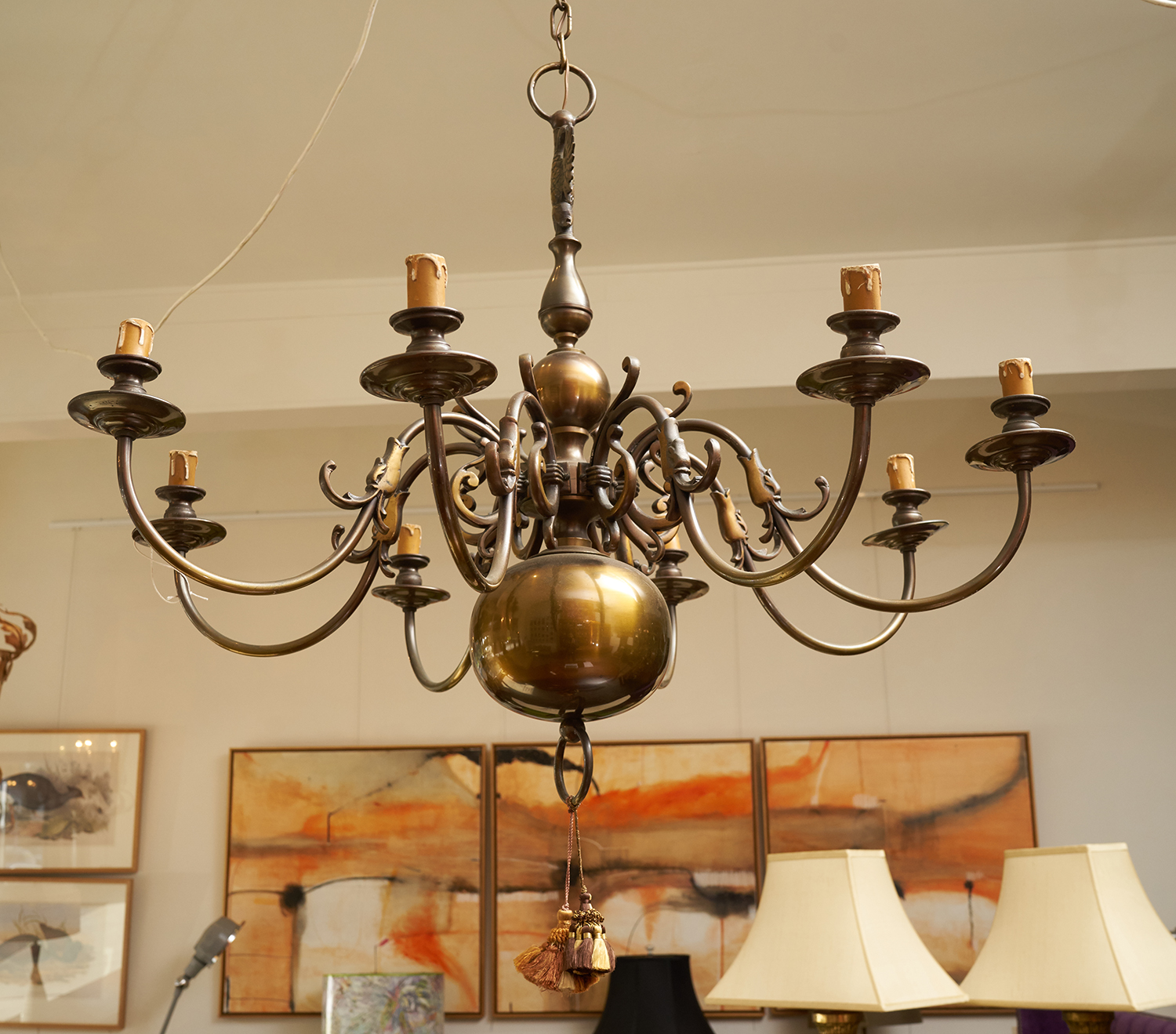 AN IMPRESSIVE FLEMISH INSPIRED EIGHT BRANCH CHANDELIER
