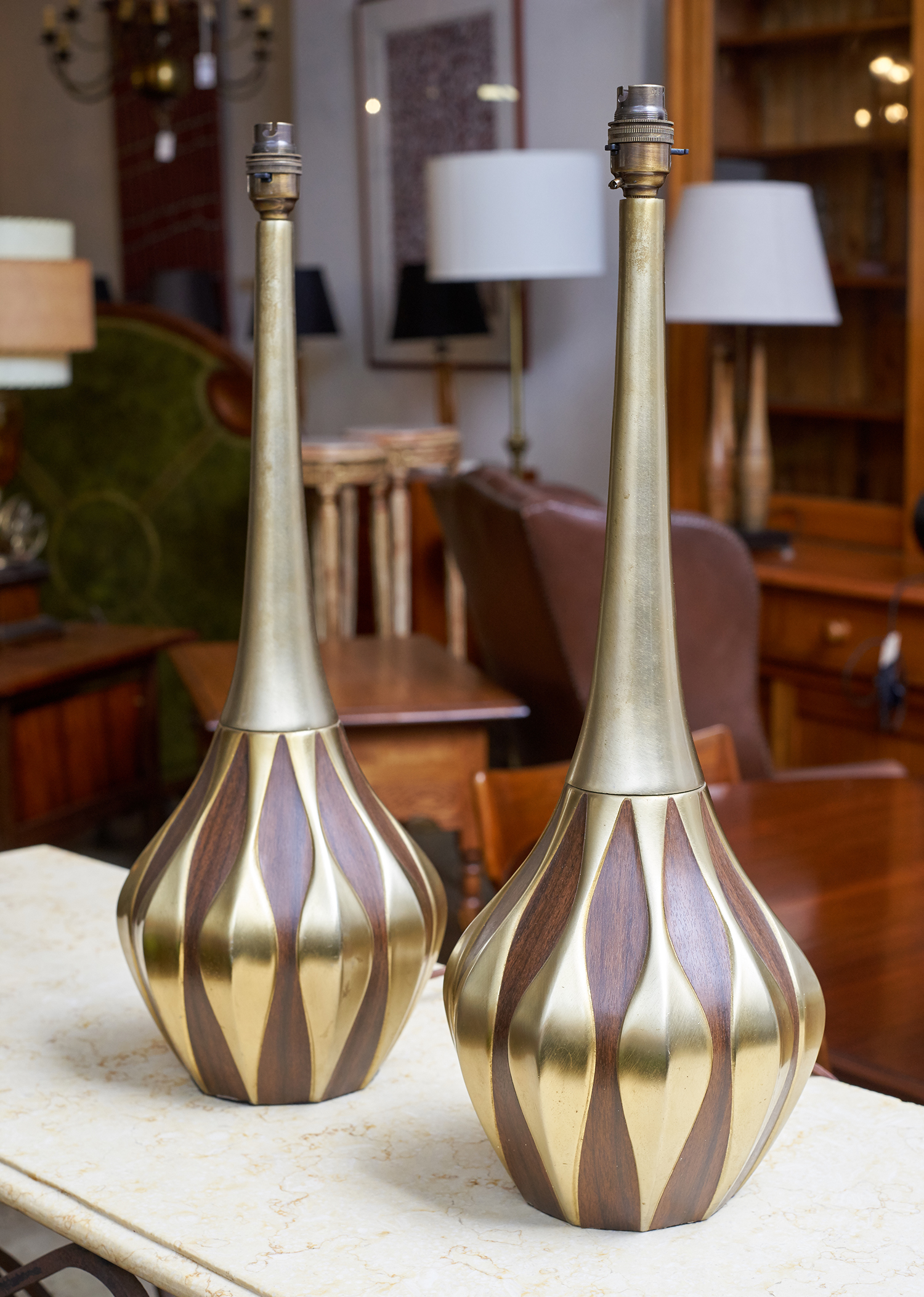 These lamps are in excellent condition consisten with age. There are a few minor surface scratches. Both in perfect working order