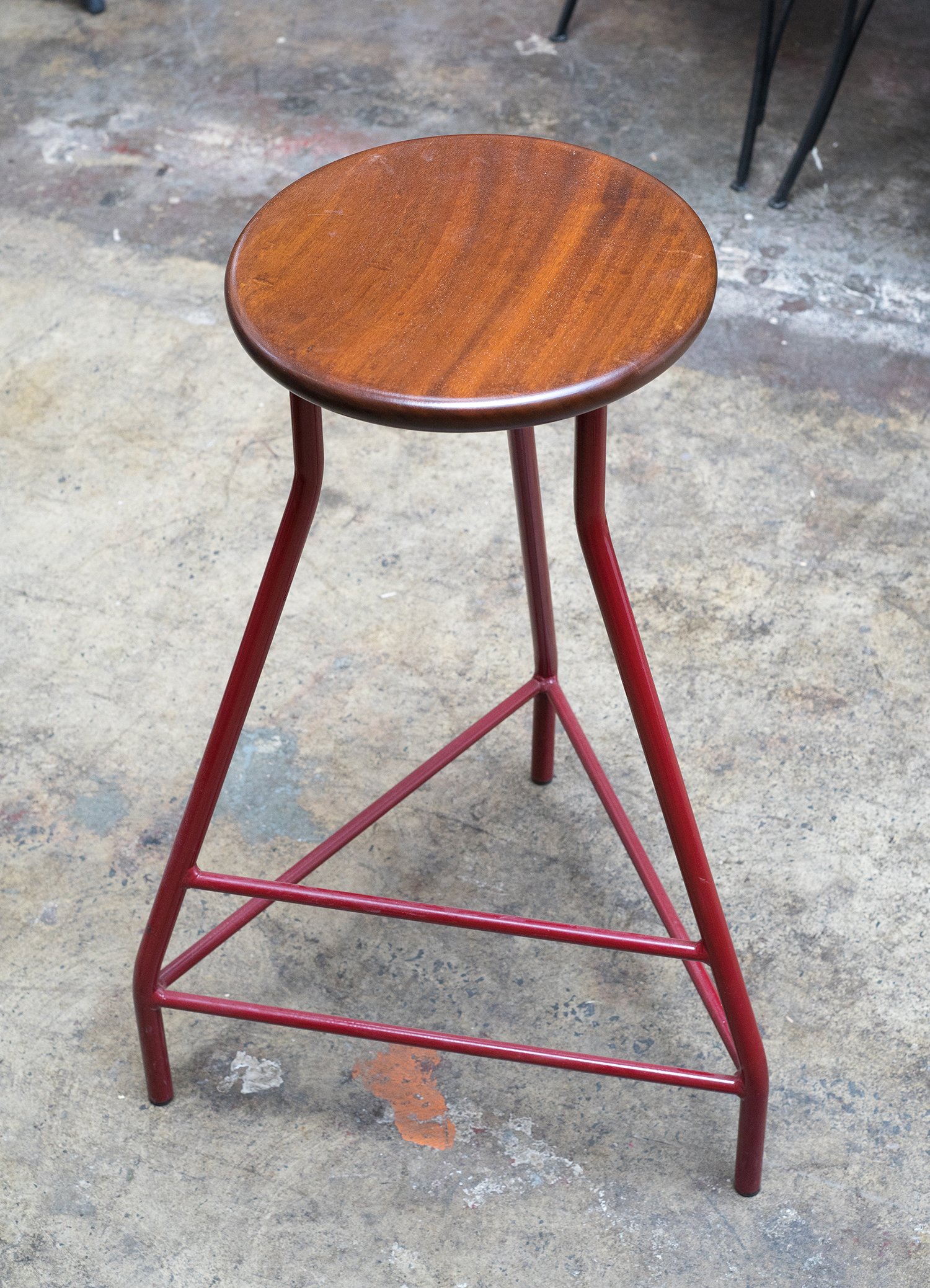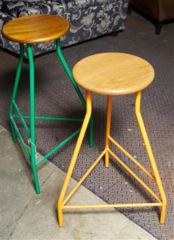 THREE CONTEMPORARY STOOLS ON TRIPOD BASE