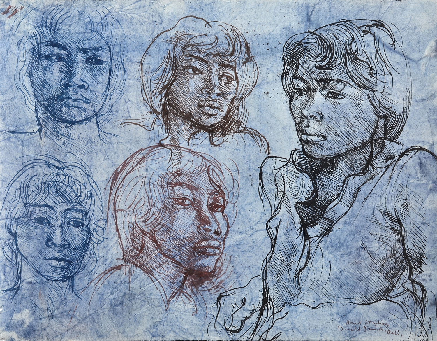titled and signed lower right: Head Studies/ Donald Friend, Bali.