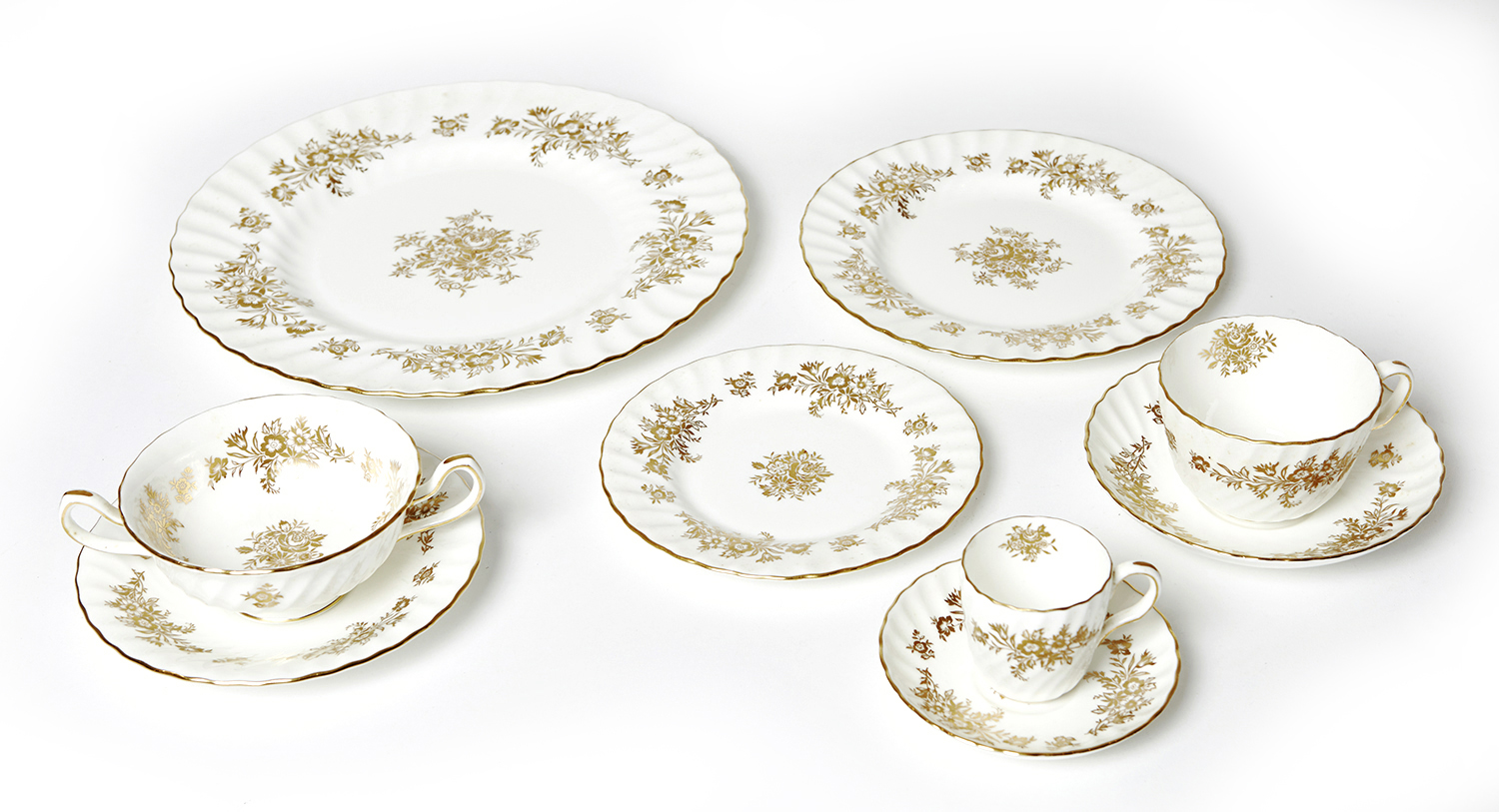 Mostly unused, embellished with gold gilding, comprising a full setting for 12
