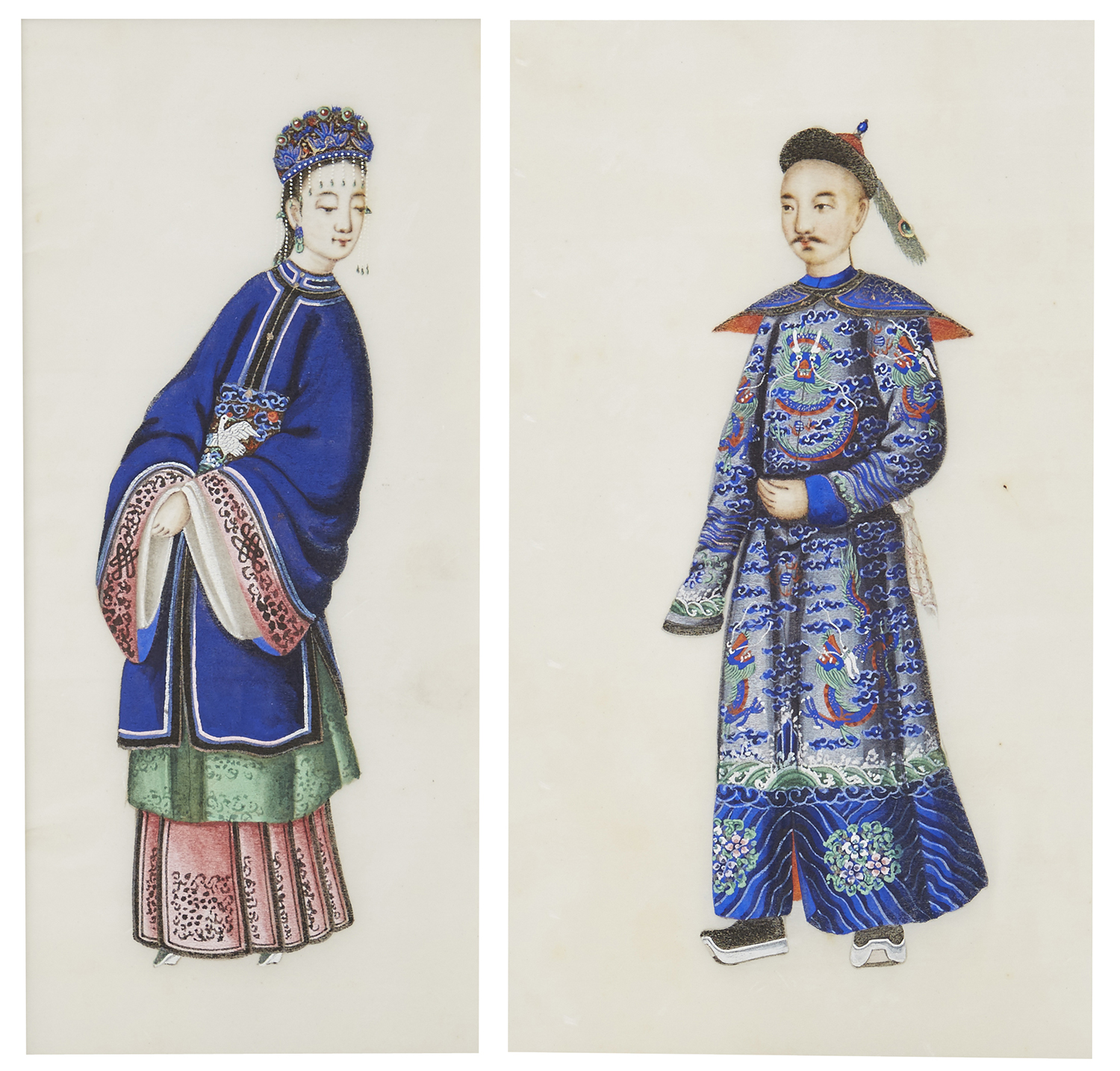 A PAIR OF CHINESE 19TH CENTURY EXPORT PAINTINGS ON RICE PAPER