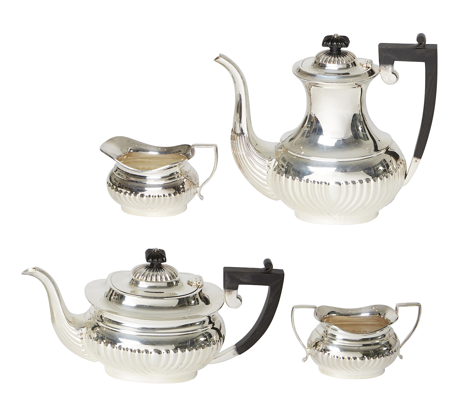 With fluted detailing and ebonised finials and handles, total weight 1910 grams