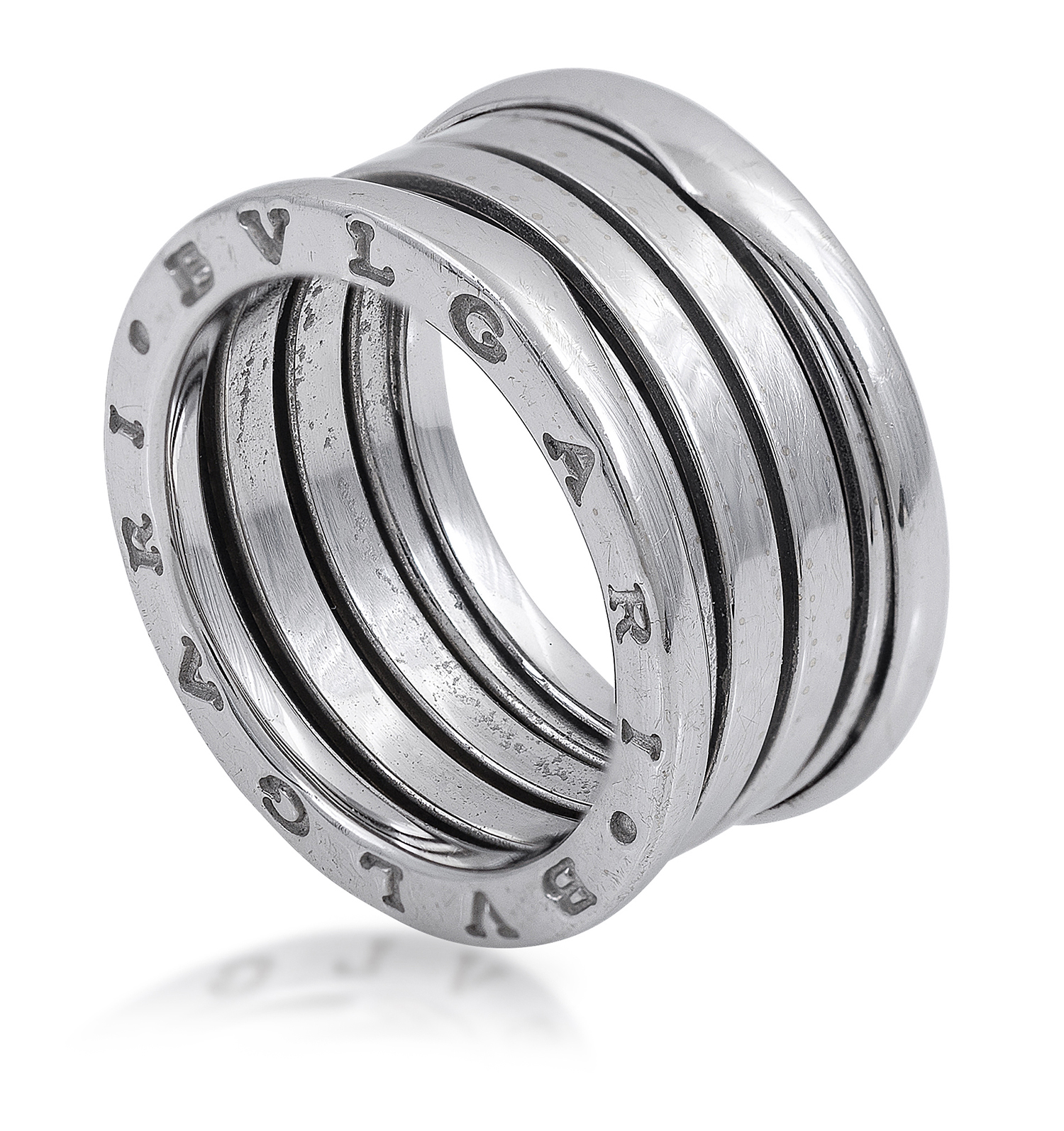 From the B.Zero1 collection, the expandable band styled in 18ct white gold, signed, ring size P.