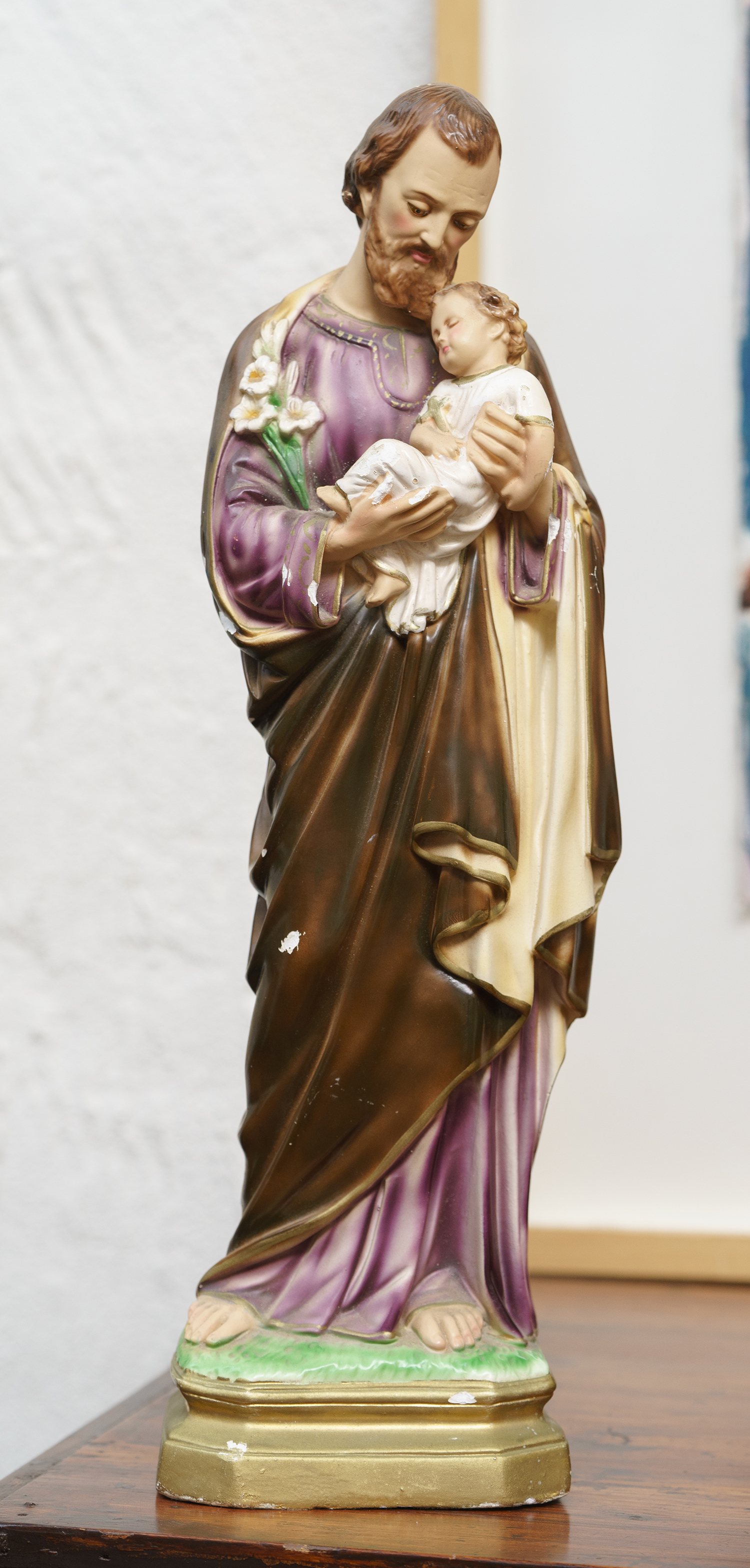 Overall this statue is in great condition. The pigments are perfect on the face. There are some losses to the plaster on back of figure, and front side