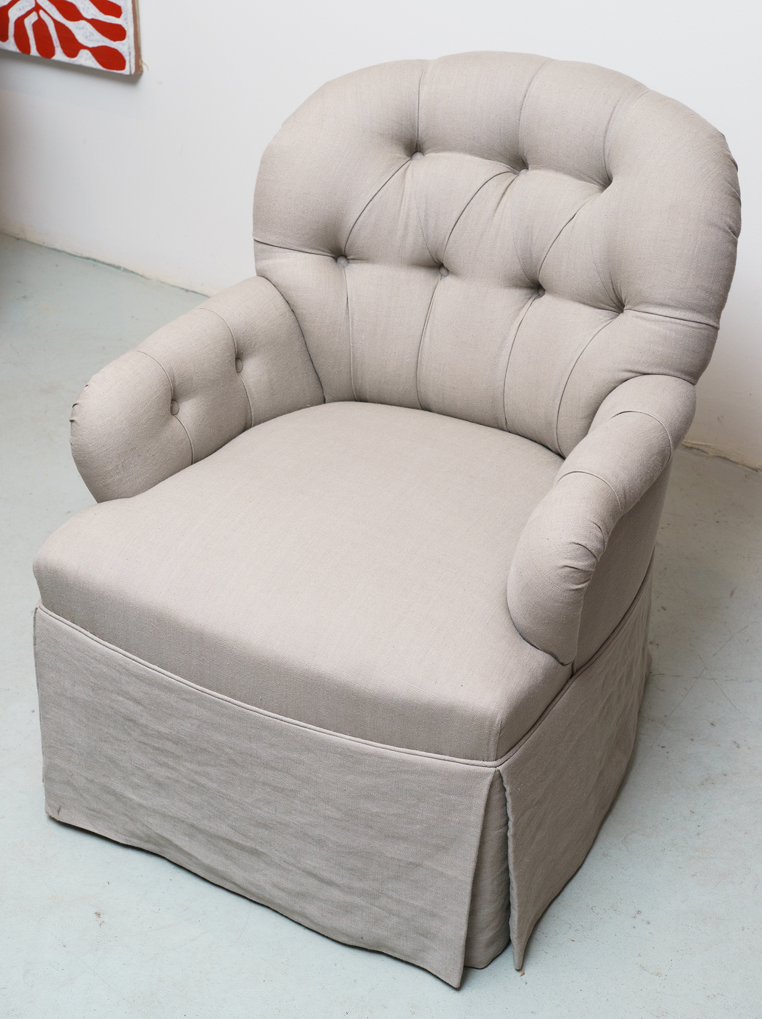 A 19th CENTURY INSPIRED BUTTON BACKED ARMCHAIR