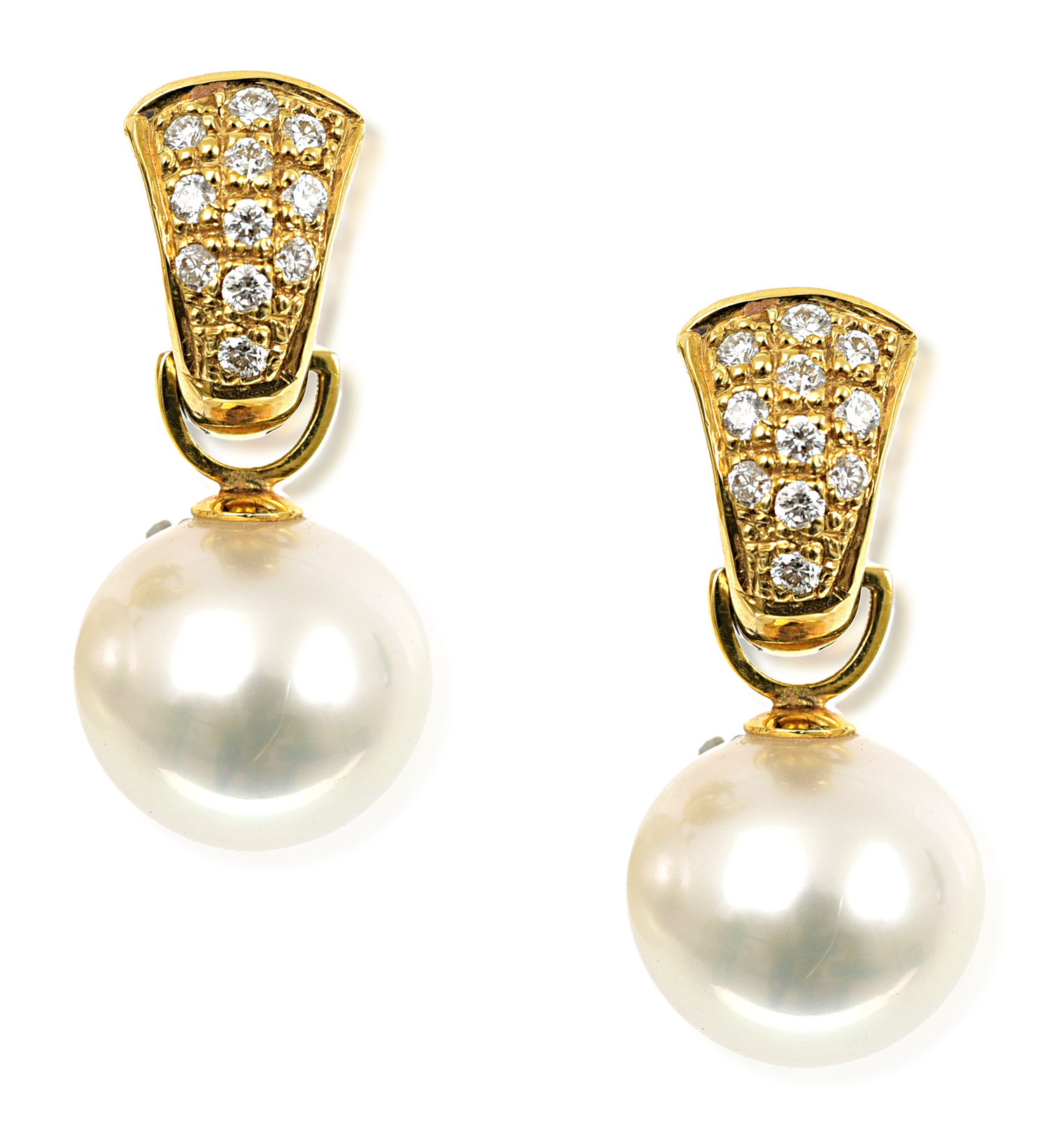 Earrings present in excellent condition. Versatile as they can also be worn without the pearls as diamond huggies. The diamonds are secure in their settings. Pearls are well matched and display fine orient. Diamonds are of very good commercial colour and clarity. Having post and clip fittings secure when closed.