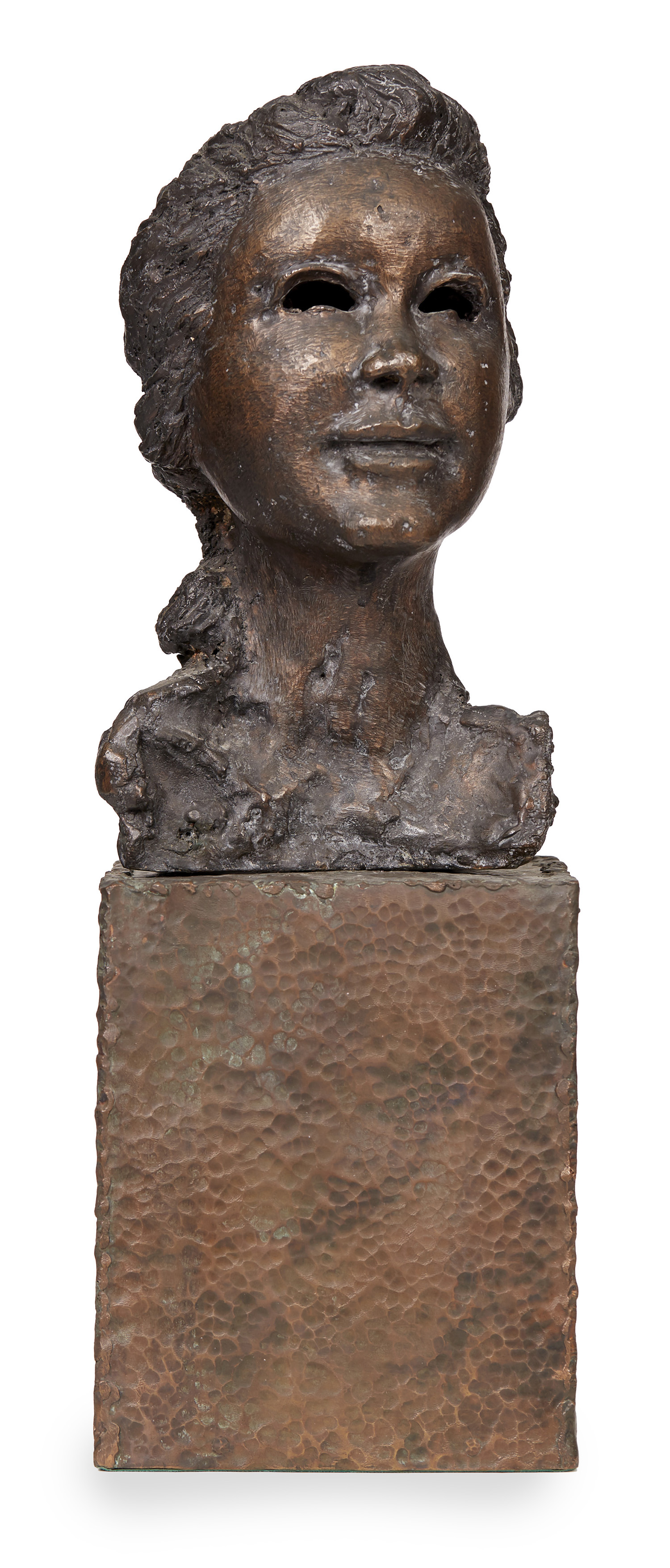 BRONZE BUST ON PLANISHED BRONZE STAND, ARTISTS UNKNOWN