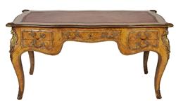 A LOUIS XV STYLE PARQUETRY DESK WITH BRASS MOUNTS, FIRST HALF 20TH CENTURY