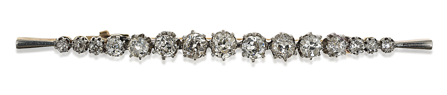 Comprising fifteen graduated old European cut diamonds, mounted in 14ct gold.